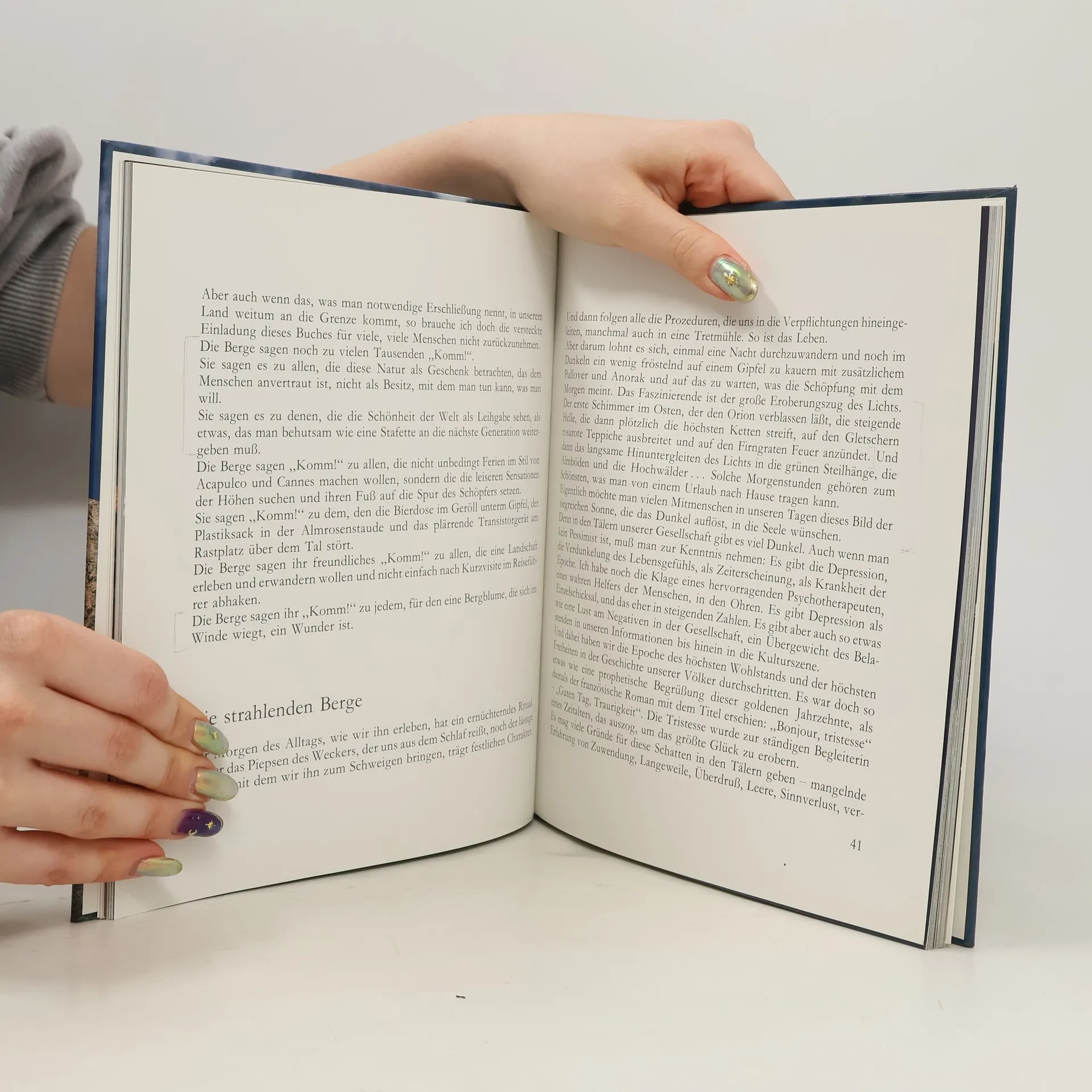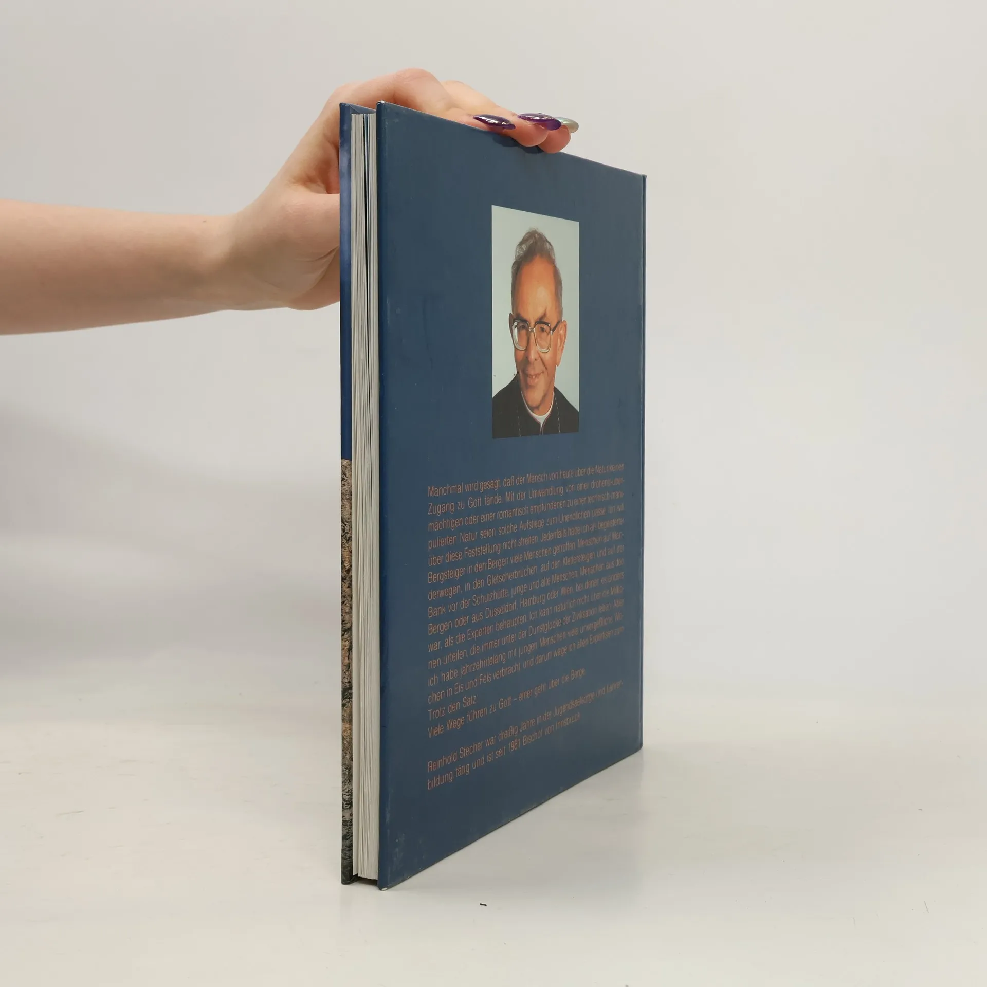 „Viele Wege führen zu Gott, einer geht über die Berge.“ (Reinhold Stecher) Manchmal wird gesagt, dass der Mensch von heute über die Natur keinen Zugang zu Gott fände. Mit der Umwandlung von einer drohend – übermächtigen oder einer romantisch empfundenen zu einer technisch – manipulierten Natur seien solche Aufstiege zum Unendlichen passé. Reinhold Stecher hat jahrzehntelang mit jungen Menschen viele unvergessliche Wochen in Eis und Fels verbracht, und darum wagt der Autor allen Expertisen zum Trotz diesen obigen Satz. „Prachtvolle Farbfotos aus der Bergwelt sind begleitet von Texten, die die Symbolik dieser Erlebnisse in Worte kleiden.“ (ORF, Wien) „Es gibt Bücher, die fesseln, die interessieren, die belehren, und solche, die alles in allem sind und damit beglücken. Ein solches Buch ist die ‚Botschaft der Berge‘. Es sitzt jedes Wort und jeder Satz, jede Beobachtung und jede Schlussfolgerung.“ (Sonntagsblatt Stmk.) “Das Buch ist ein Ausdruck der tiefen Überzeugung, dass auch in unserer technisierten Welt das ‚Erlebnis Natur‘ zum ‚Erlebnis Gott‘ werden kann.“ (Tiroler Tagesszeitung)