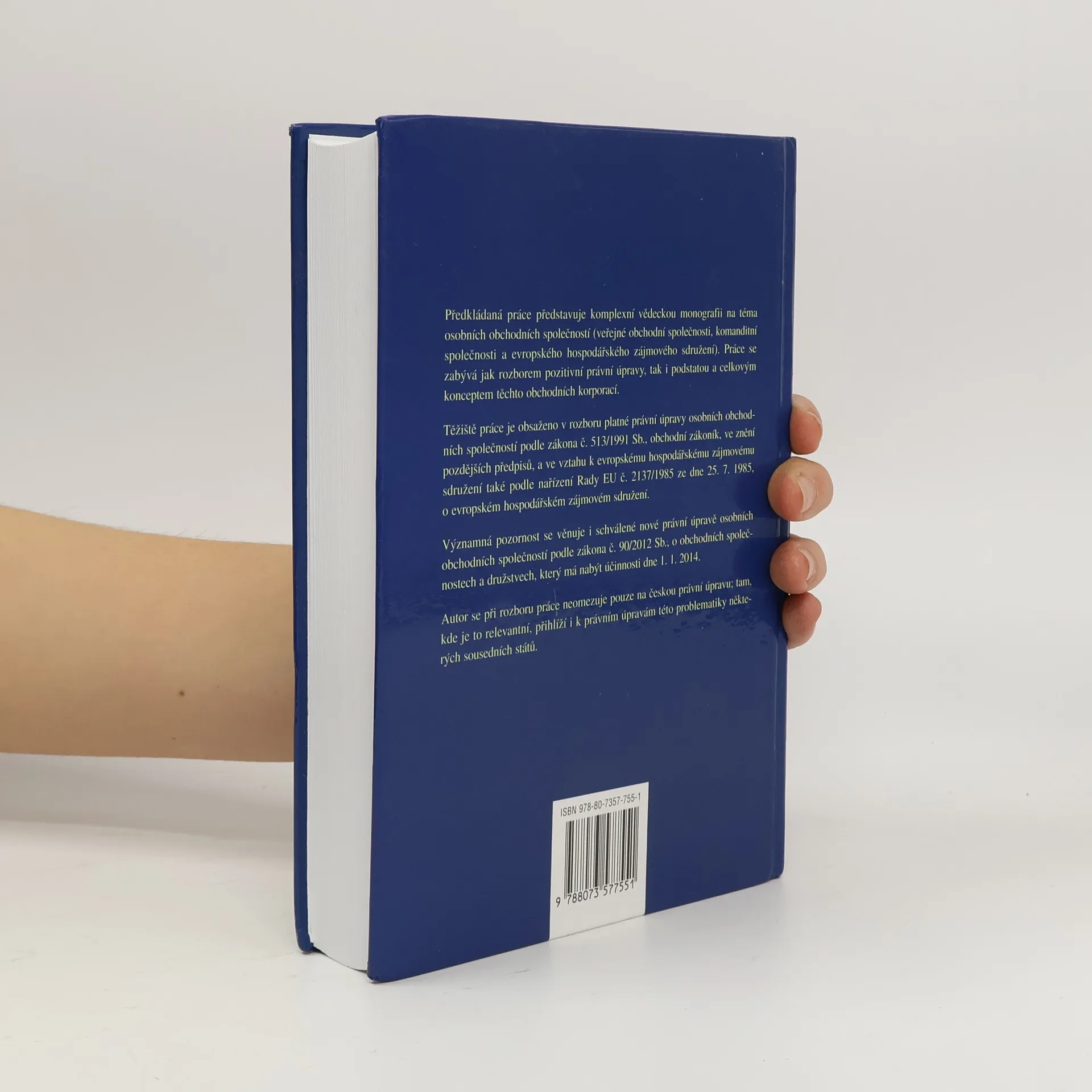 Předkládaná práce představuje komplexní vědeckou monografii na téma osobních obchodních společností (veřejné obchodní společnosti, komanditní společnosti a evropského hospodářského zájmového sdružení). Práce se zabývá jak rozborem pozitivní právní úpravy, tak i podstatou a celkovým konceptem těchto obchodních korporací. Těžiště práce je obsaženo v rozboru platné právní úpravy osobních obchodních společností podle zákona č. 513/1991 Sb., obchodní zákoník, ve znění pozdějších předpisů, a ve vztahu k evropskému hospodářskému zájmovému sdružení také nařízení Rady EU č. 2137/1985 ze dne 25. 7. 1985, o evropském hospodářském zájmovém sdružení. Významná pozornost je věnována i nové právní úpravě osobních obchodních společností podle zákona č. 90/2012 Sb., o obchodních společnostech a družstvech, který má nabýt účinnosti dne 1. 1. 2014. Autor Tomáš Dvořák se při rozboru se práce neomezuje pouze na českou právní úpravu; tam, kde je to relevantní, přihlíží i k právním úpravám této problematiky některých sousedních států.