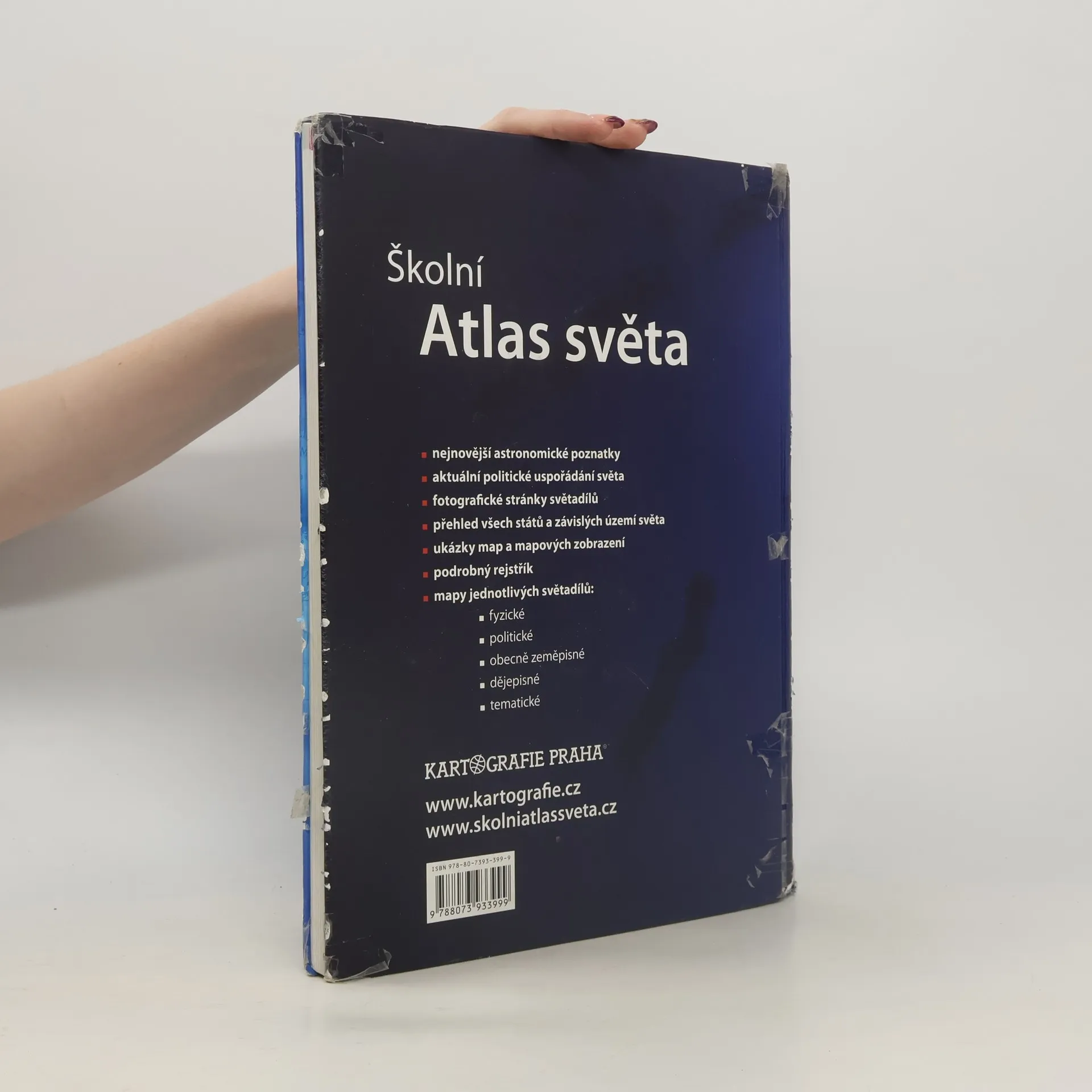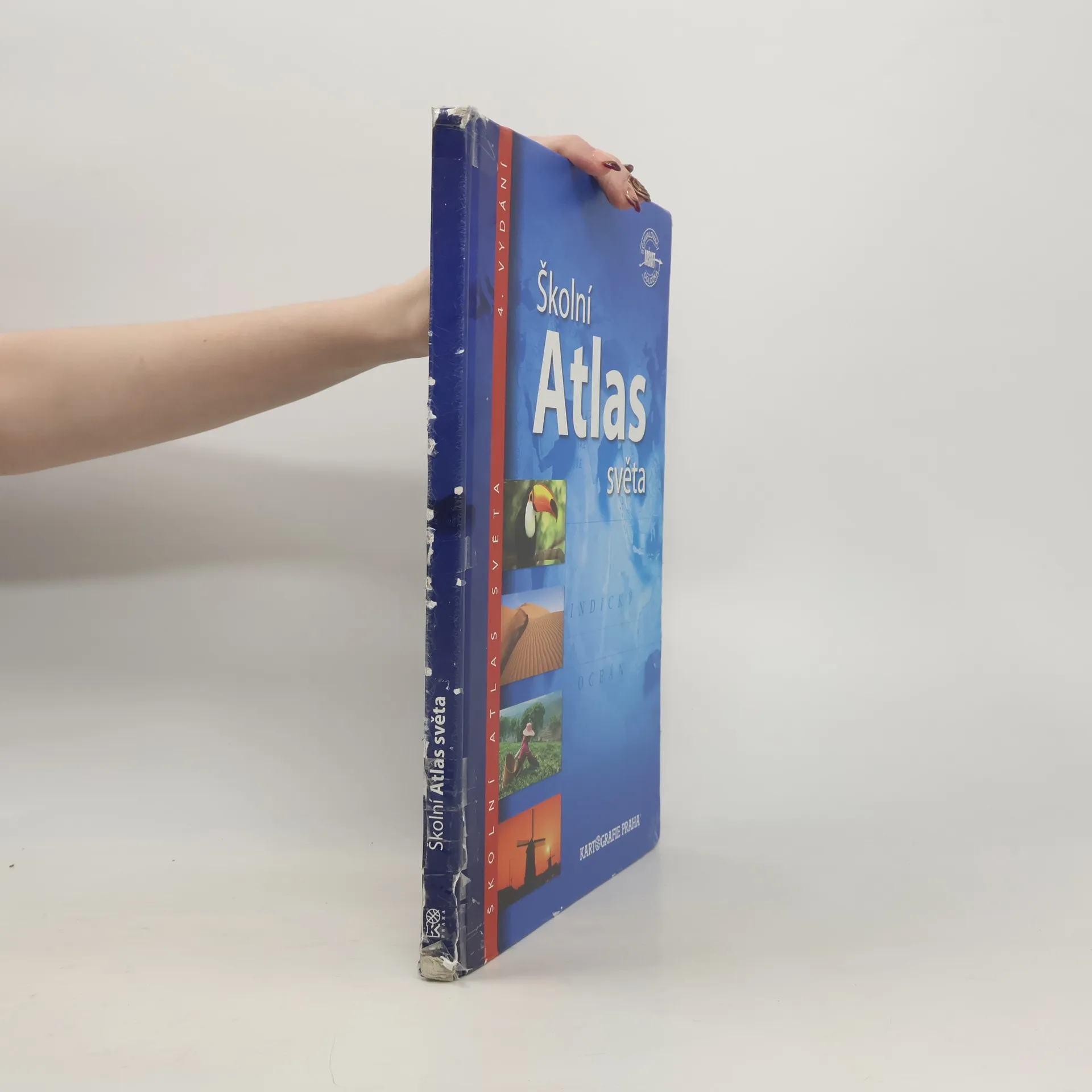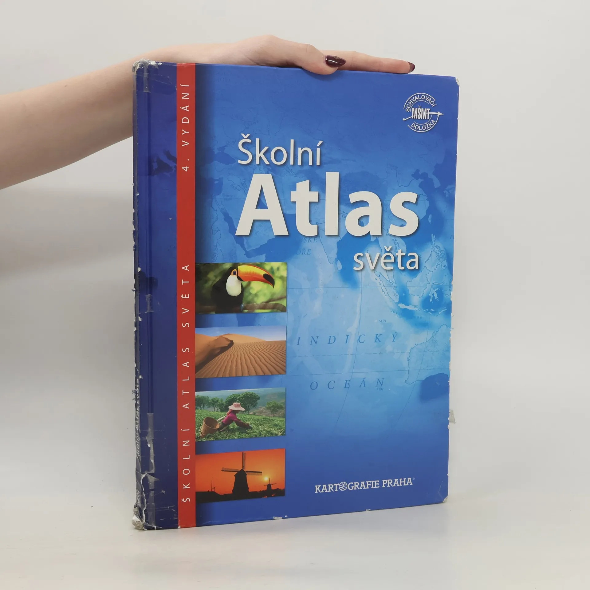 Nejprodávanější český školní atlas je univerzální pomůckou pro výuku zeměpisu na všech stupních škol. Atlas je rozdělen do tematických kapitol s barevným odlišením, což usnadňuje orientaci v mapách. Úvodní část obsahuje nejnovější astronomické poznatky o vesmíru a Sluneční soustavě. Následuje kapitola Svět s tematickými mapami zaměřenými na přírodu, obyvatelstvo, hospodářství a prostředí, v němž lidé žijí. Části věnované jednotlivým světadílům zahrnují podrobné obecně zeměpisné mapy s doplňujícími tematickými mapami a historickými mapami klíčových etap vývoje kontinentů, což umožňuje mezipředmětovou výuku. Mapovou část každého světadílu uvádějí fotografické stránky s charakterizujícím textem a tabulkou geografických údajů. Atlas obsahuje přehlednou tabulku všech států a závislých území světa, tabulky zeměpisných rekordů a rejstřík s více než 15 000 názvy. Čtvrté vydání navazuje na úspěšná vydání z let 2004, 2007 a 2011. Mezi novinky patří témata jako zaměstnanost žen, vzdělání, zdravotnictví a kvalita života, nové téma Ohniska napětí ve světě, fyzická a administrativní mapa Česka, podrobná mapa severní Asie a vylepšený znakový klíč obecně zeměpisných map pro lepší čitelnost.