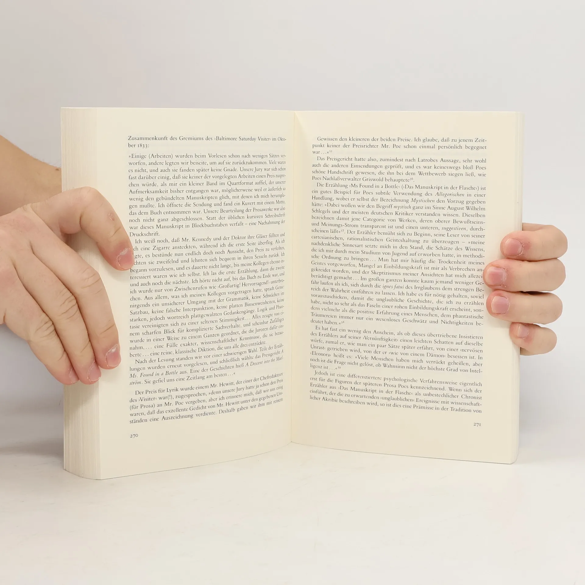 Edgar Allan Poe (1809 - 1849) war der Schöpfer von phantastischen Grotesken und Arabesken. Er schrieb meisterhafte Gedichte, die als bedeutende Bespiele der Moderne gelten, und er war ein bissiger Kritiker, der sich durch seine Polemiken viele Feinde im amerikanischen Kulturestablishment machte. Um seine Gedichte, Novellen und phantastischen Erzählungen, die den Leser in ein Verwirrspiel zwischen Realität und listiger Mystifikation führen, ranken sich bis heute Verrufenes und Legenden, Spekulationen und psychologische Deutungsversuche.§Der Autor bringt in dieser Biographie Klarheit in die komplizierten Wechselbeziehungen zwischen Leben und Werk dieses "schwierigen Phantasiekopfes".