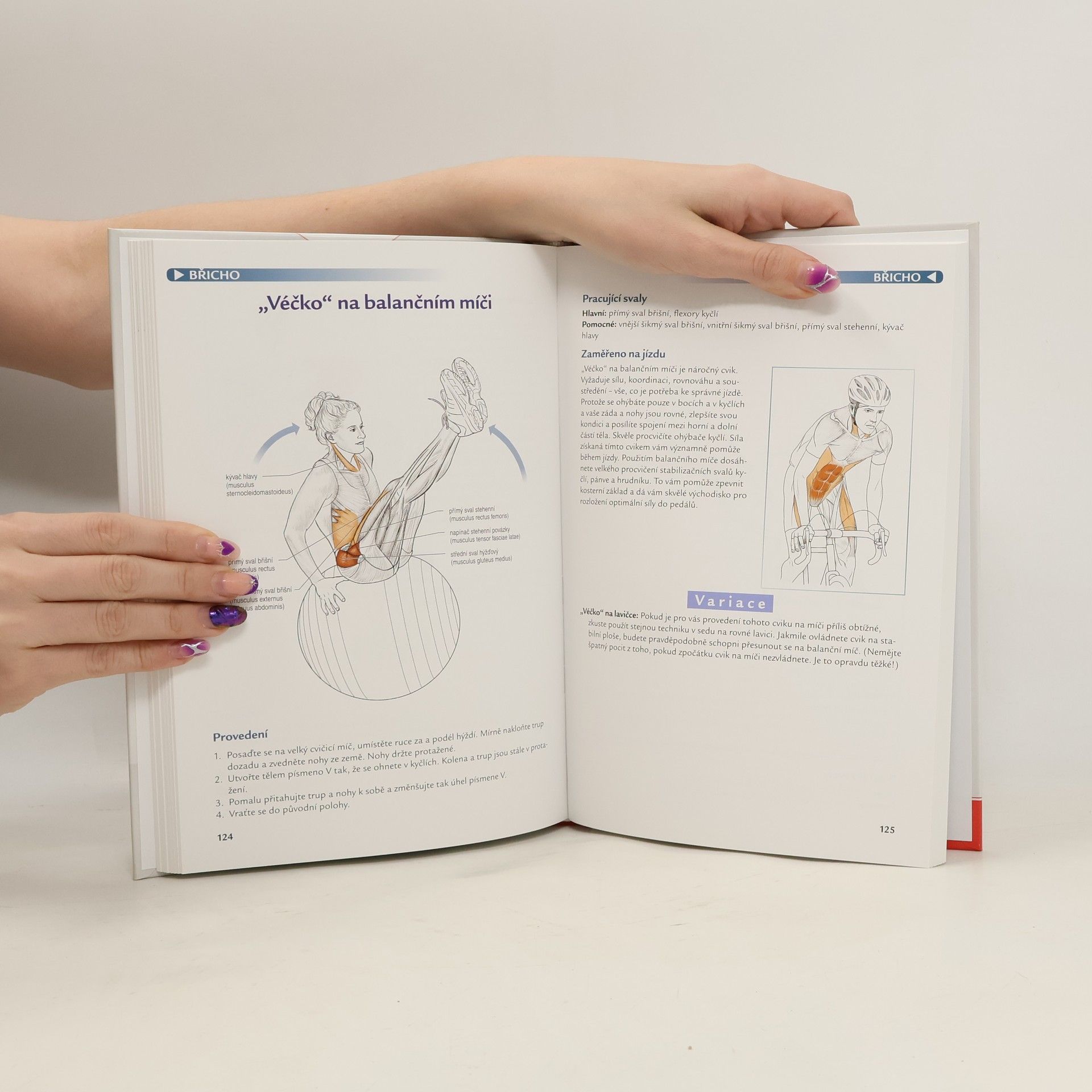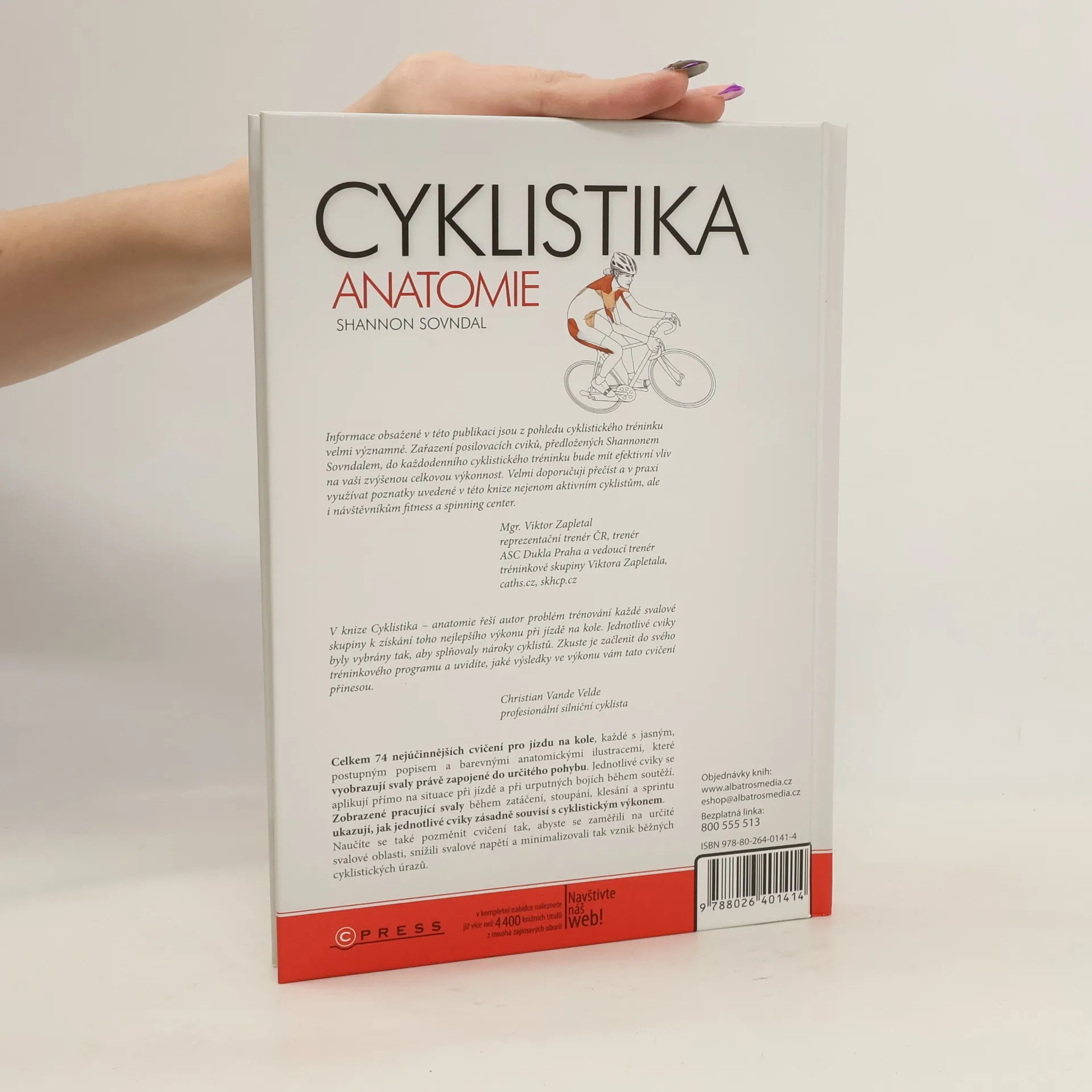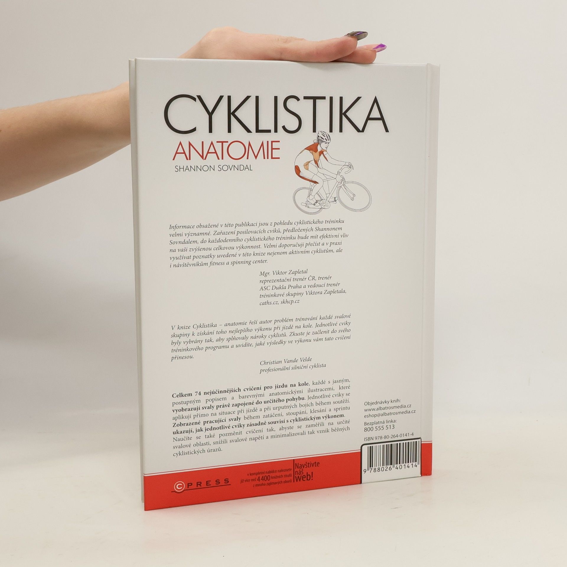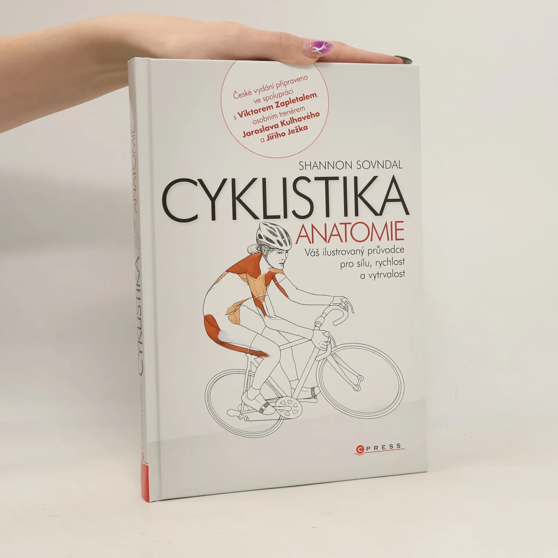 74 nejúčinnějších cvičení pro jízdu na kole, každé s jasným, postupným popisem a barevnými anatomickými ilustracemi, které vyobrazují svaly právě zapojené do určitého pohybu. Jednotlivé cviky kniha aplikuje přímo na situace při jízdě a při bojích během soutěží. Zobrazené pracující svaly během zatáčení, stoupání, klesání a sprintu ukazují, jak jednotlivé cviky zásadně souvisí s cyklistickým výkonem. Doporučuje osobní trenér Jaroslava Kulhavého a Jiřího Ježka, Mgr. Viktor Zapletal.