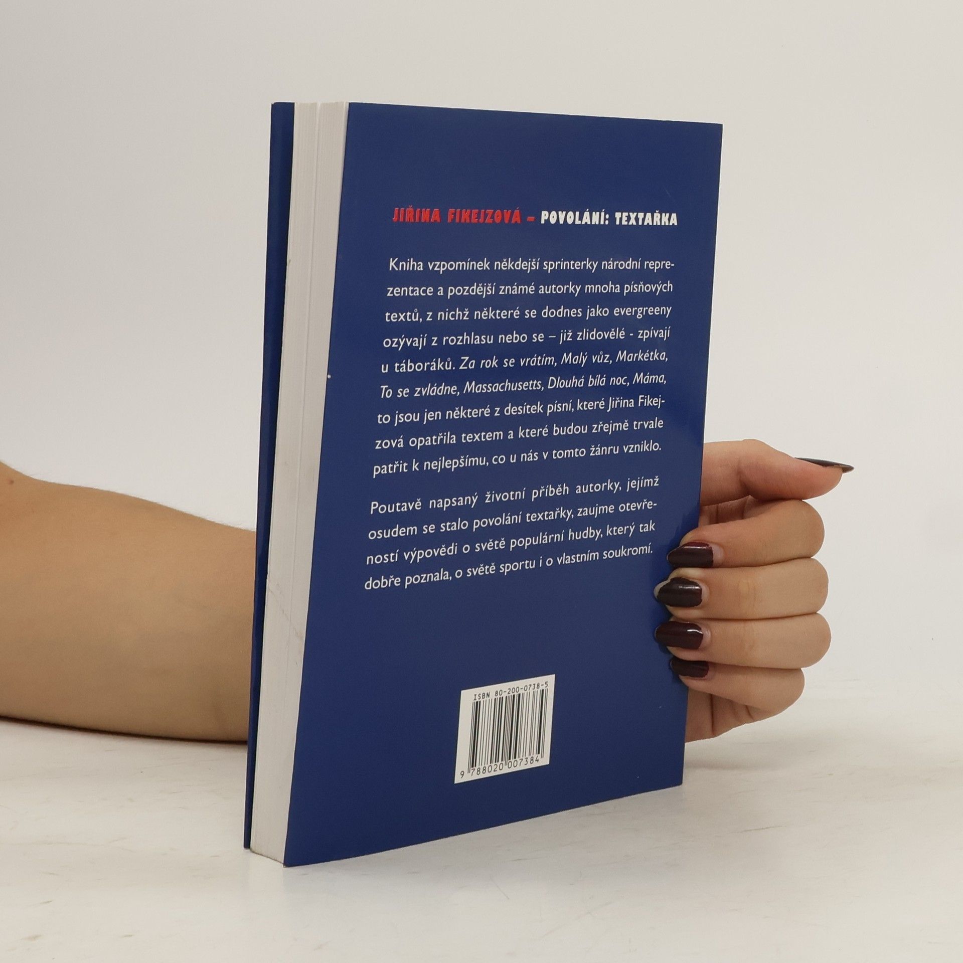 Poutavě napsaný životní příběh autorky, jejímž osudem se stalo povolání textařky. Známá autorka písňových textů vstoupila do povědomí veřejnosti původně jako sportovkyně, sprinterka národní reprezentace a později jako autorka mnoha písňových textů: Kde ty kytky jsou, Za rok se vrátím, To mám tak ráda, Malý vůz, Máma, Dlouhá bílá noc, Markétka, To se zvládne, Massachusetts … to jsou jen některé, z desítek písní a šansonů, které Jiřina Fikejzová otextovala. Z mnohých se staly evergreeny a ozývají se dodnes v podání původních i nových interpretů. Knížka vzpomínek je bohatá na množství lidských příběhů, historek, názorů, postřehů a zamyšlení. Jsou o věcech soukromých i veřejných, o době dětství a dospívání v Sudetech, o pozdějších studiích v Praze i o světě sportu a zejména populární hudby, o známých osobnostech i lidech zcela neznámých, jejichž pozoruhodné životní příběhy se tak či onak prolnuly s životem autorky.