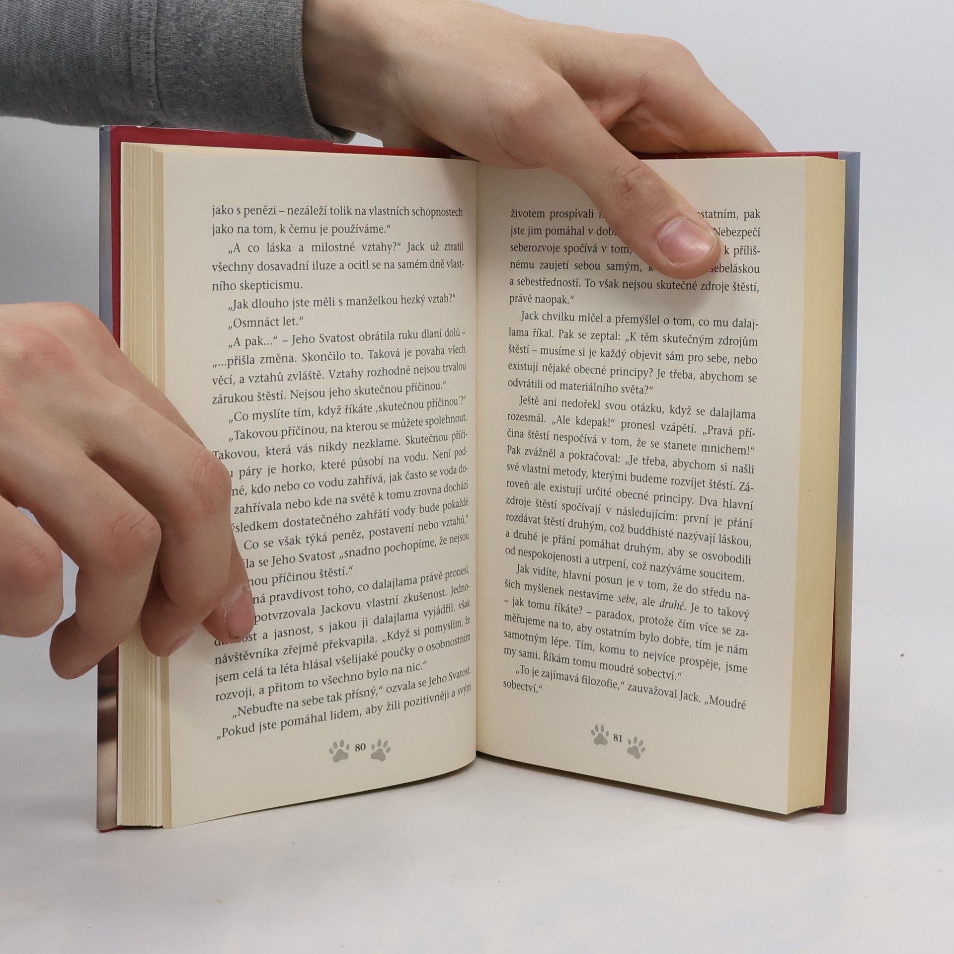 Maličkého kotěte, kterému hrozí nešťastný osud, se ujme samotný dalajlama. Kočička líčí svůj každodenní život v jeho těsné blízkosti. Stává se svědkem rozhovorů mezi dalajlamou a jeho hosty. Postupně poznává, v čem spočívá štěstí, a jak ho na cestě životem najít, což není pro žádnou živou bytost snadné. V laskavém příběhu často nechybějí humorné situace, kočka se tře o nohy hollywoodských hvězd a dělí se s námi o poznání, které získává v klášteře buddhistických mnichů. „Chci, aby i díky této knize lidé dospěli k tomu, že nejdůležitější je láska v různých podobách. Šťastní jste, když se staráte o druhé a dáváte jim lásku. To je jedna z nejúčinnějších cest ke štěstí,“ říká o Dalajlámově kočce její autor David Michie.