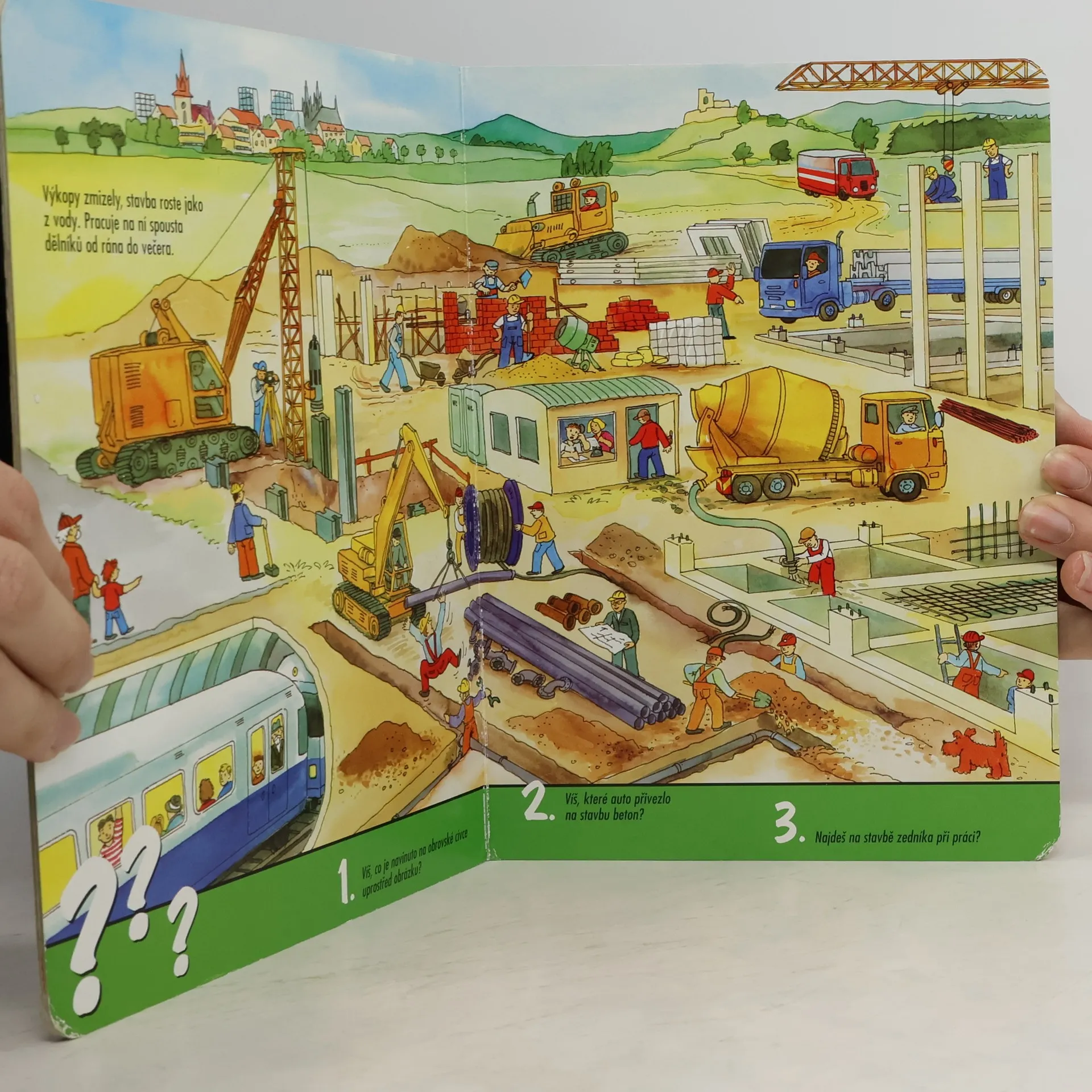 Leporelo seznámí nejmenší děti s prostředím stavby, kde budou moci obdivovat nejen stavební vozidla a stroje, ale i další zajímavosti. Krátký text, otázky a celostránkové ilustrace spolu tvoří podnětný základ pro další práci s knížkou - popisování situací, počítání, vyhledávání předmětů, atd.