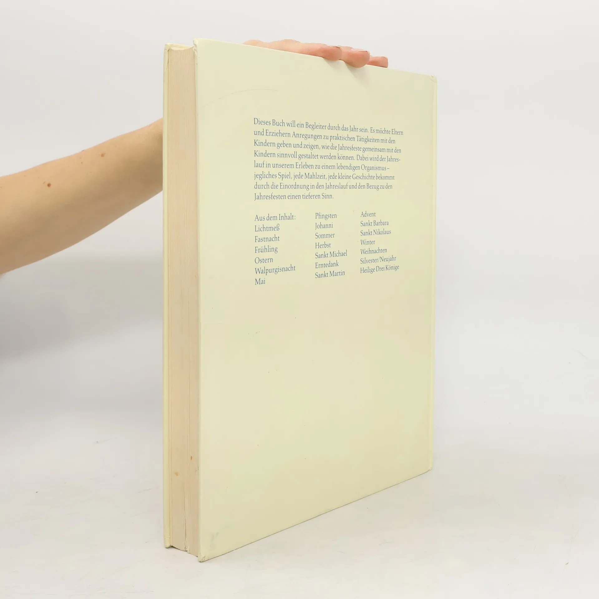 Dieses Buch ist ein Begleiter durch das Jahr. Es möchte Eltern und Erziehern Anregungen zu praktischen Tätigkeiten mit den Kindern geben und zeigen, wie die Jahresfeste gemeinsam mit den Kindern sinnvoll gestaltet werden können. Dabei wird der Jahreslauf in unserem Erleben zu einem lebendigen Organismus - jegliches Spiel, jede Mahlzeit, jede kleine Geschichte bekommt durch die Einordnung in den Jahreslauf und den Bezug zu den Jahresfesten einen tieferen Sinn.