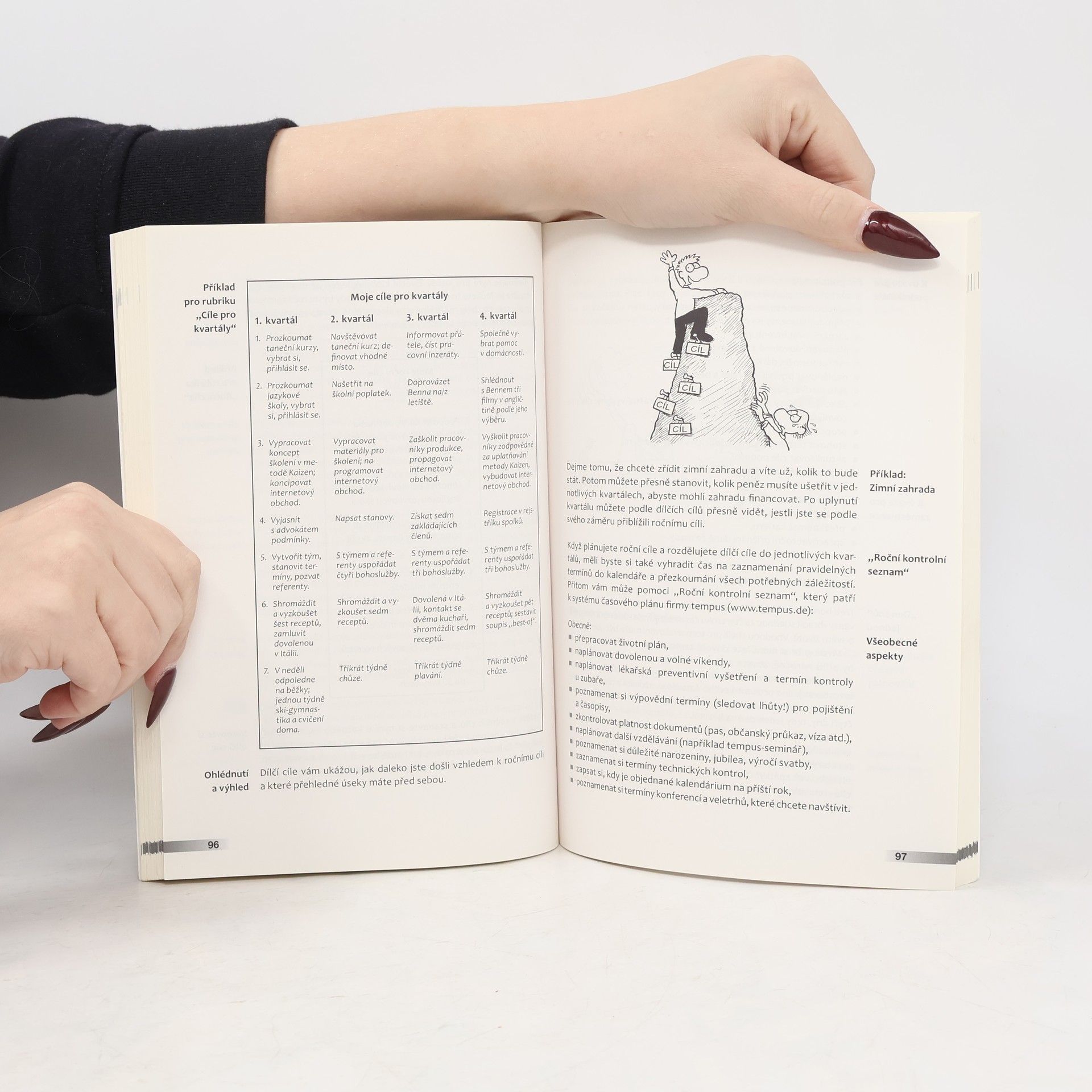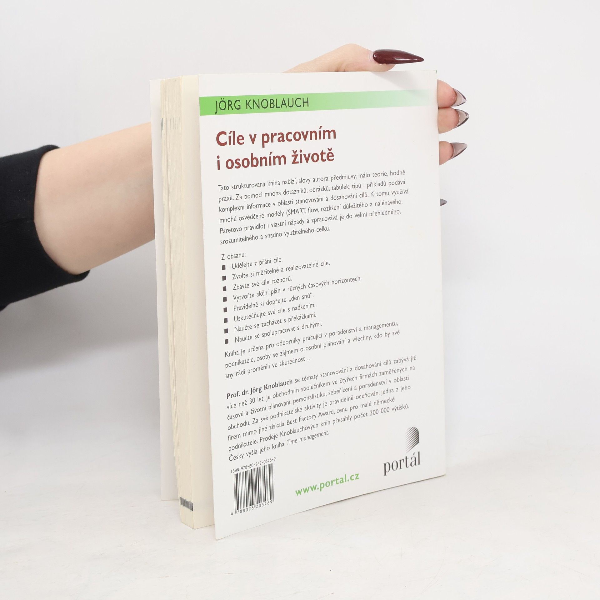 Bohatě strukturovaná kniha nabízí, slovy autora předmluvy, málo teorie a hodně praxe. Za pomoci mnoha dotazníků, obrázků, tabulek, tipů i příkladů nabízí komplexní informace v oblasti stanovování a dosahování cílů. K tomu využívá mnohé osvědčené modely (SMART, flow, rozlišení důležitého a naléhavého, Paretovo pravidlo) i vlastní nápady a zpracovává je do velmi přehledného, srozumitelného a snadno využitelného celku. Čtenáři se naučí např. přetvářet přání na cíle, zvolit si dobré, bezrozporné cíle, vytvořit akční plán v různých časových horizontech, uskutečňovat své cíle s vášní, naučit se zacházet s překážkami, spolupracovat s druhými apod. Kniha je určena pro odborníky pracující v poradenství a managementu, podnikatele, osoby se zájmem o osobní plánování i všechny ty, kdo by své sny rádi proměnili ve skutečnost. Prof. dr. Jörg Knoblauch se tématy stanovování a dosahování cílů zabývá již 30 let. Je obchodním společníkem ve čtyřech firmách zaměřených na časové a životní plánování, personalistiku, sebeřízení a poradenství v oblasti obchodu. Za své podnikatelské aktivity je pravidelně oceňován: jedna z jeho firem mimo jiné získala Best Factory Award, cenu pro malé německé podnikatele. Prodeje Knoblauchových knih přesáhly počet 300 tisíc výtisků. Česky vyšla jeho kniha Time management