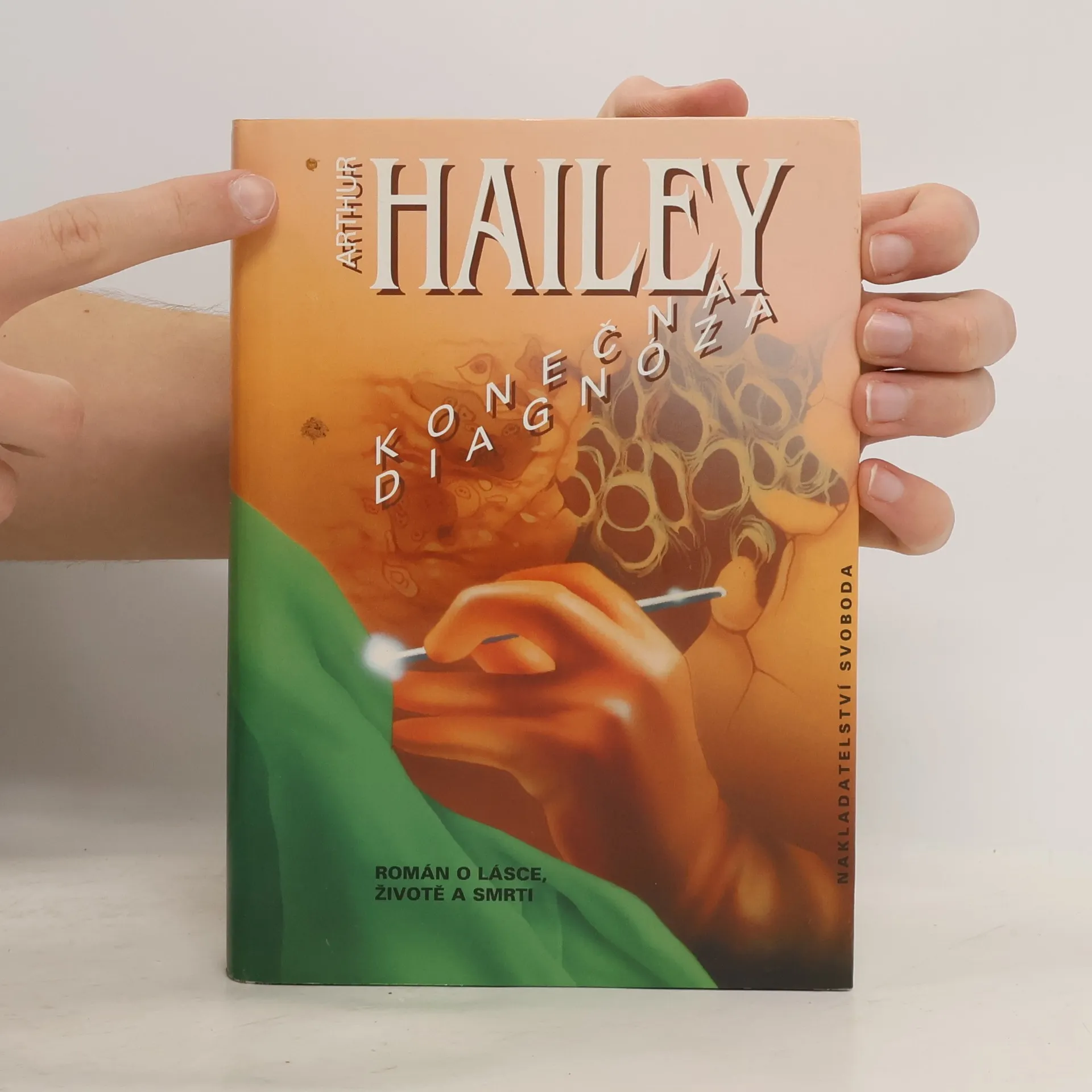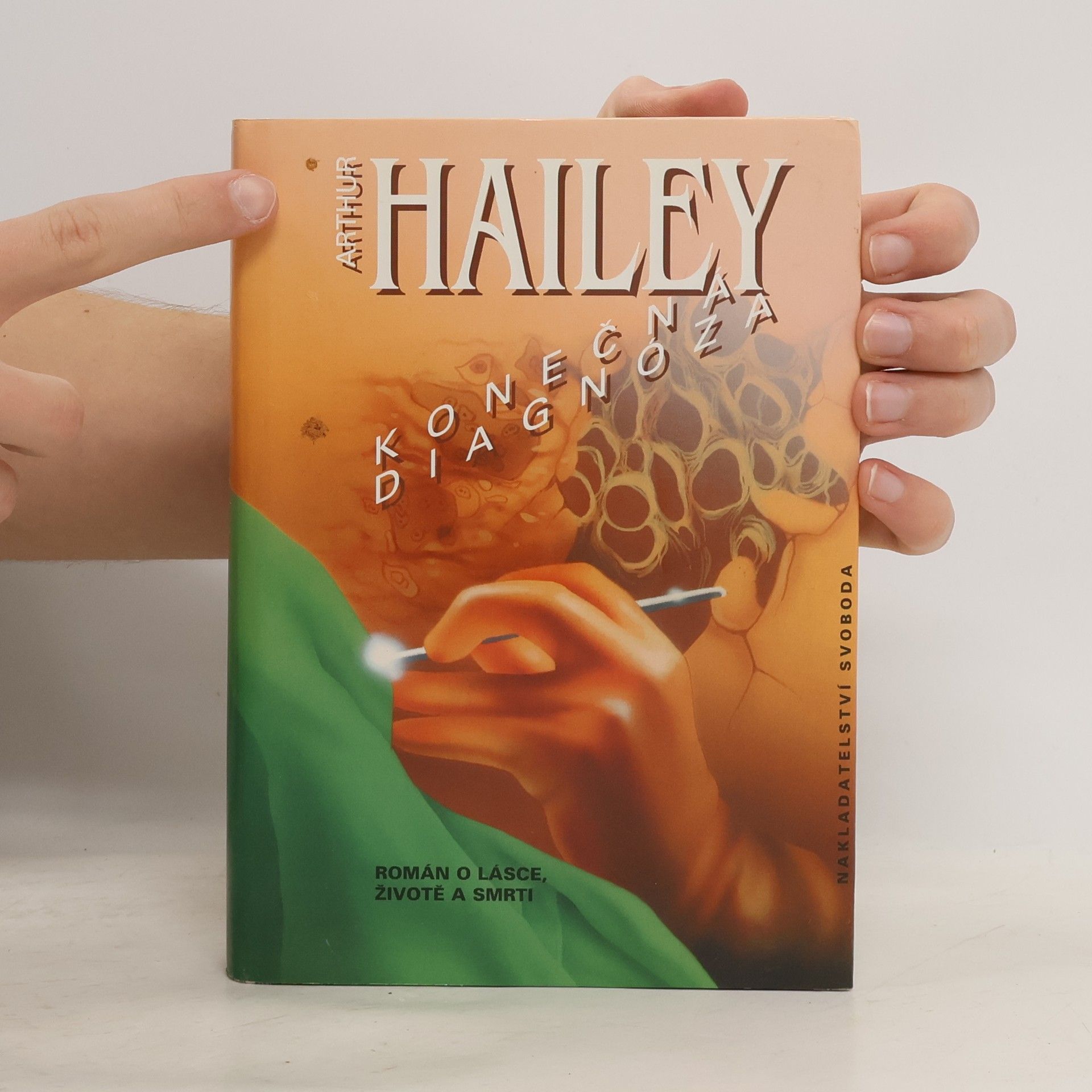 Román Konečná diagnóza, vydaný v roce 1959, se stal prvním skutečným Haileyho bestsellerem. Autor svůj román umístil na oddělení, po jehož vyslovení většině z nás naskočí husí kůže – na patologii. V dramaticky se rozvíjejících a vzájemně se prolínajících příbězích jednotlivých hrdinů plasticky ukazuje klíčový význam tohoto oddělení – nikoli jen jako místa, kde se pitvají nebožtíci, ale především jako pracoviště, jehož hlavním úkolem je stanovit diagnózu pacientů a určit tak i jejich úspěšnou léčbu. Každý omyl může vyústit v tragédii končící mnohdy smrtí… Hlavním hrdinou je starý doktor Joseph Pearson, primář patologie v nemocnici Three Counties, jenž svému oddělení, kterému vládne pevnou rukou, zasvětil celý svůj profesní a po úmrtí manželky i osobní život. Jak se vyrovnává starý rutinér s novými metodami medicíny, jak se mu daří sledovat a aplikovat nové profesní trendy – to jsou klíčové otazníky, které zasahují i do osudů jeho nejbližších spolupracovníků – mladého sekundáře Mika Seddonse a jeho snoubenky „žákyňky“ Vivian Loburtonové či laboratorního technika Johna Alexandera, jeho manželky a jejich dosud nenarozeného dítěte… Jak dopadne od počátku tušený střet dosluhujícího primáře s mladým ambiciózním doktorem Colemanem? Vždyť nakonec snaha všech pracovníků patologického oddělení je určena jedním cílem – stanovit správnou konečnou diagnózu