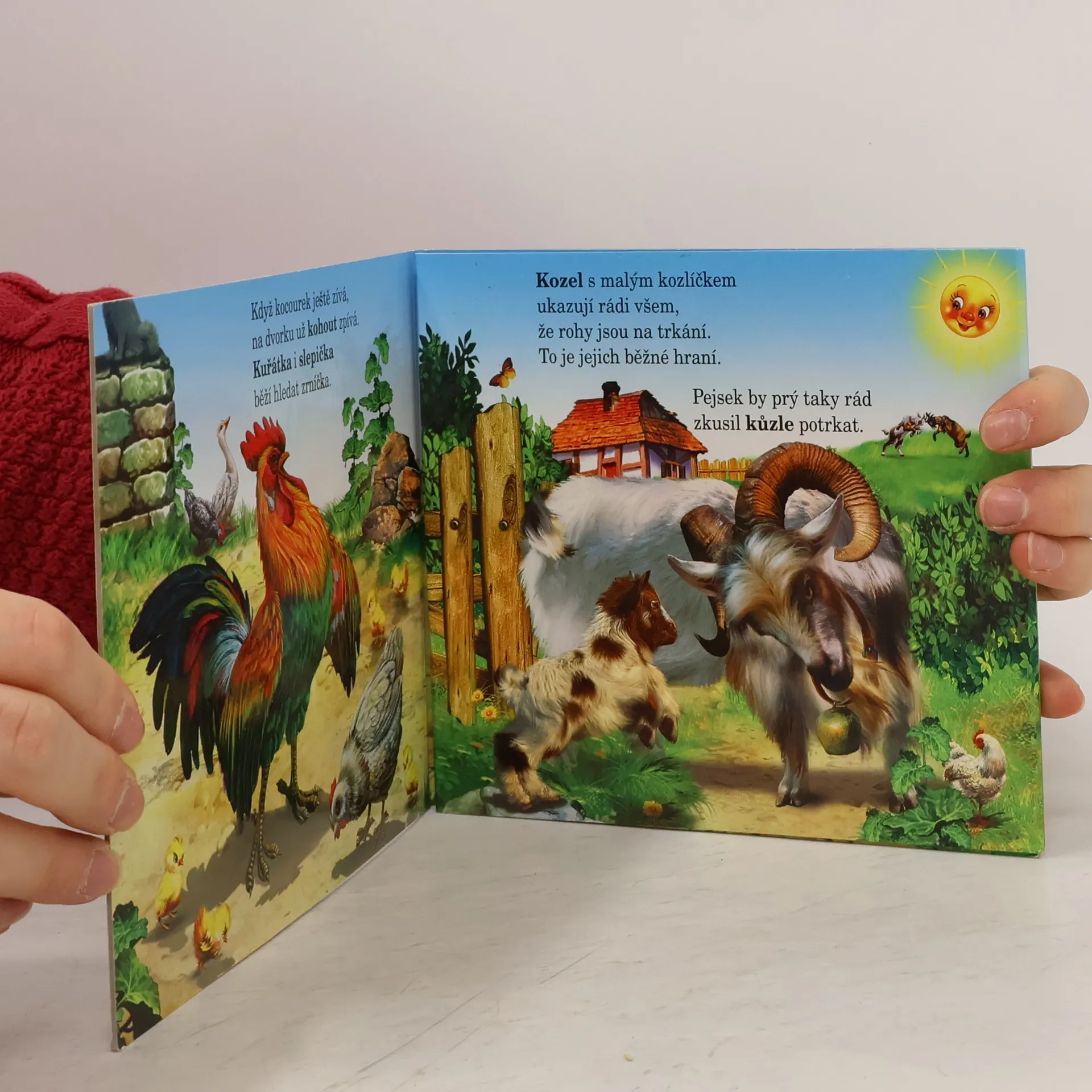 Proč má koník zvučný krok? Má podkovy celý rok. Veselé rozkládací leporelo seznámí nejmenší děti se životem na dvorku.