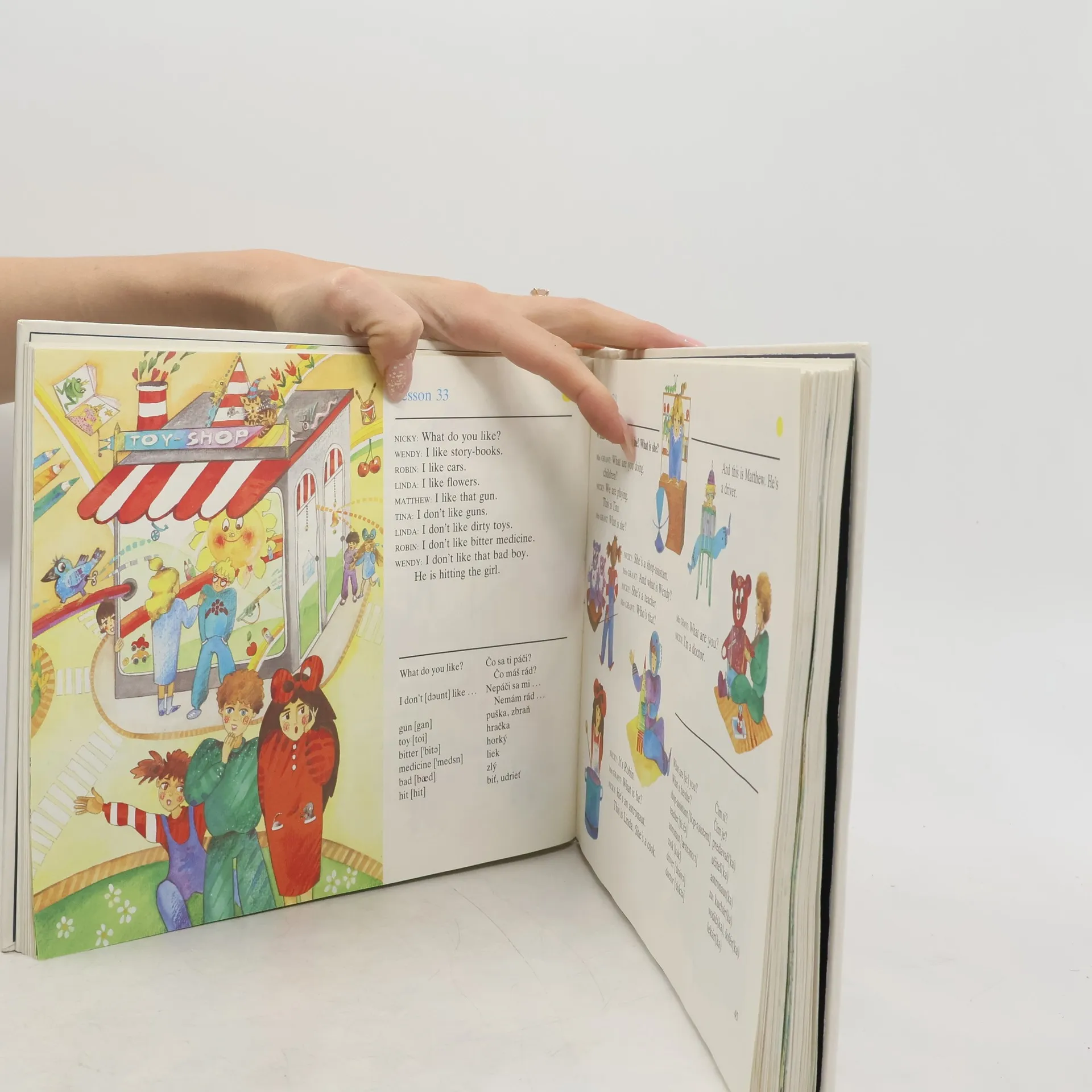 Učebnica angličtiny pre malé deti rozdelená do lekcií. Obsahuje anglicko-slovenský slovník