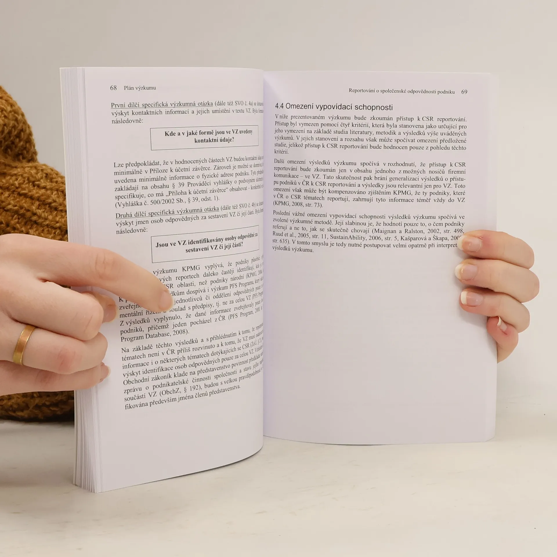 S aplikací společenské odpovědnosti podniku (CSR) v podnikohospodářské praxi je spojováno mnoho výhod. Ty však často začnou na podnik působit až při zveřejnění jeho aktivit. Proto se publikace a v ní prezentovaný výzkum zaměřuje na oblast nefinančního reportování. Stavem CSR reportování se v postkomunistických zemích zabývá jen velmi málo výzkumů. Hodnocení se také často omezují jen na vybraná hlediska reportování. Proto se stalo hlavní ambicí výzkumu identifikovat integrující přístup podniků k začleňování CSR informací do výročních zpráv v ČR. Jako vhodná metoda pro odhalení přístupu byla vybrána kvantitativní obsahová analýza. Kódovací schéma nebylo přejato z jiných výzkumů, ale vytvořeno s využitím otevřeného kódování. Výhodou takto sestavené metodiky je, že umožňuje identifikovat specifika v analyzovaném materiálu, což je plně v souladu s exporatorním charakterem výzkumu.