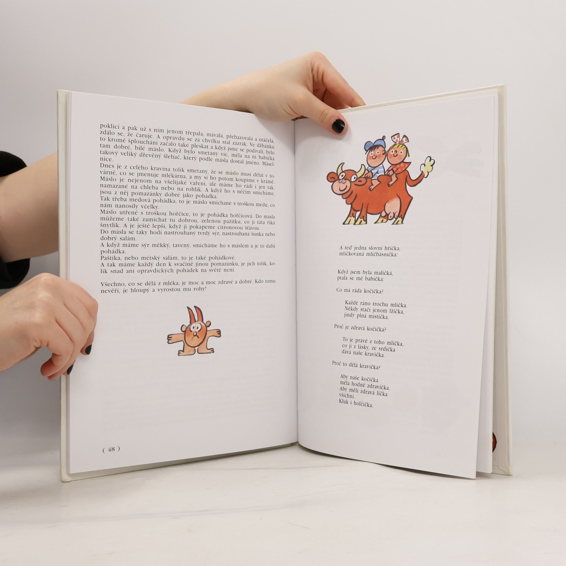 Veselé povídání pro nejmenší o jídle, vaření a domácnosti je prokládáno veršíky a pohádkami. Malý čtenář (či posluchač) se seznámí se základními druhy potravin - vč. použití a několika jednoduchých receptů, s uspořádáním kuchyně i prostíráním stolu. Vše zpestřují Nesvadbovy obrázky a exkurzy do říkadel, pohádek či příběhů.