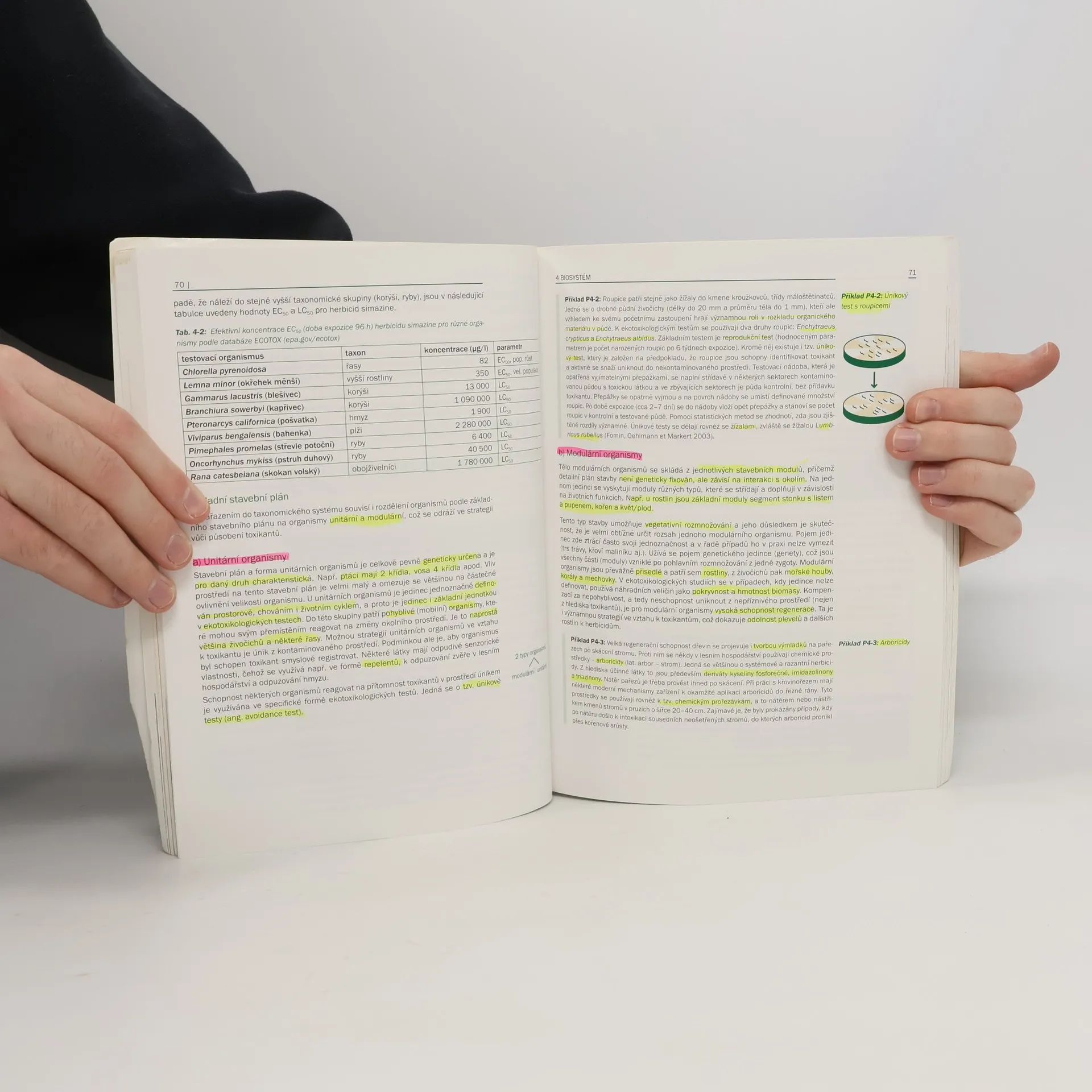 Základy ekotoxikologie, základy bioindikace a biomonitoringu jakožto diagnostických metod, které využívají reakcí živých systémů k hodnocení stresorů životního prostředí