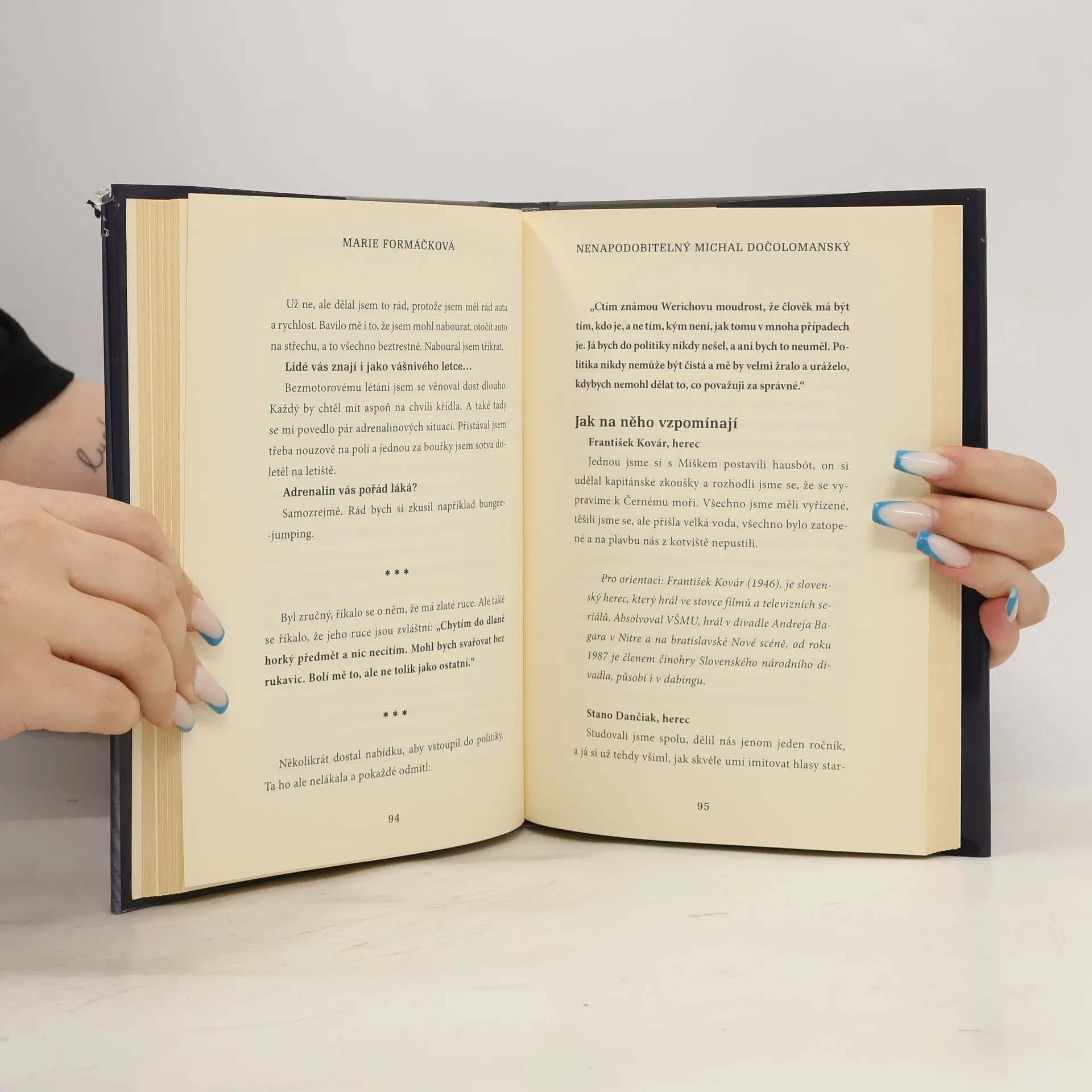 Výrazný slovenský herec Michal Dočolomanský se narodil v roce 1942, vyučil se automechanikem, ale nakonec u něj zvítězila láska k divadlu. První filmové role přišly ještě během jeho studií na Vysoké škole múzickým umení v Bratislavě, v 70. a 80. letech patřil k nejvytíženějším československým hercům, popularitu si získal především snímky Adéla ještě nevečeřela nebo Tajemství hradu v Karpatech. Životní pouť Michala Dočolomanského, od jehož smrti letos uplynou tři roky, připomíná biografie Marie Formáčkové.