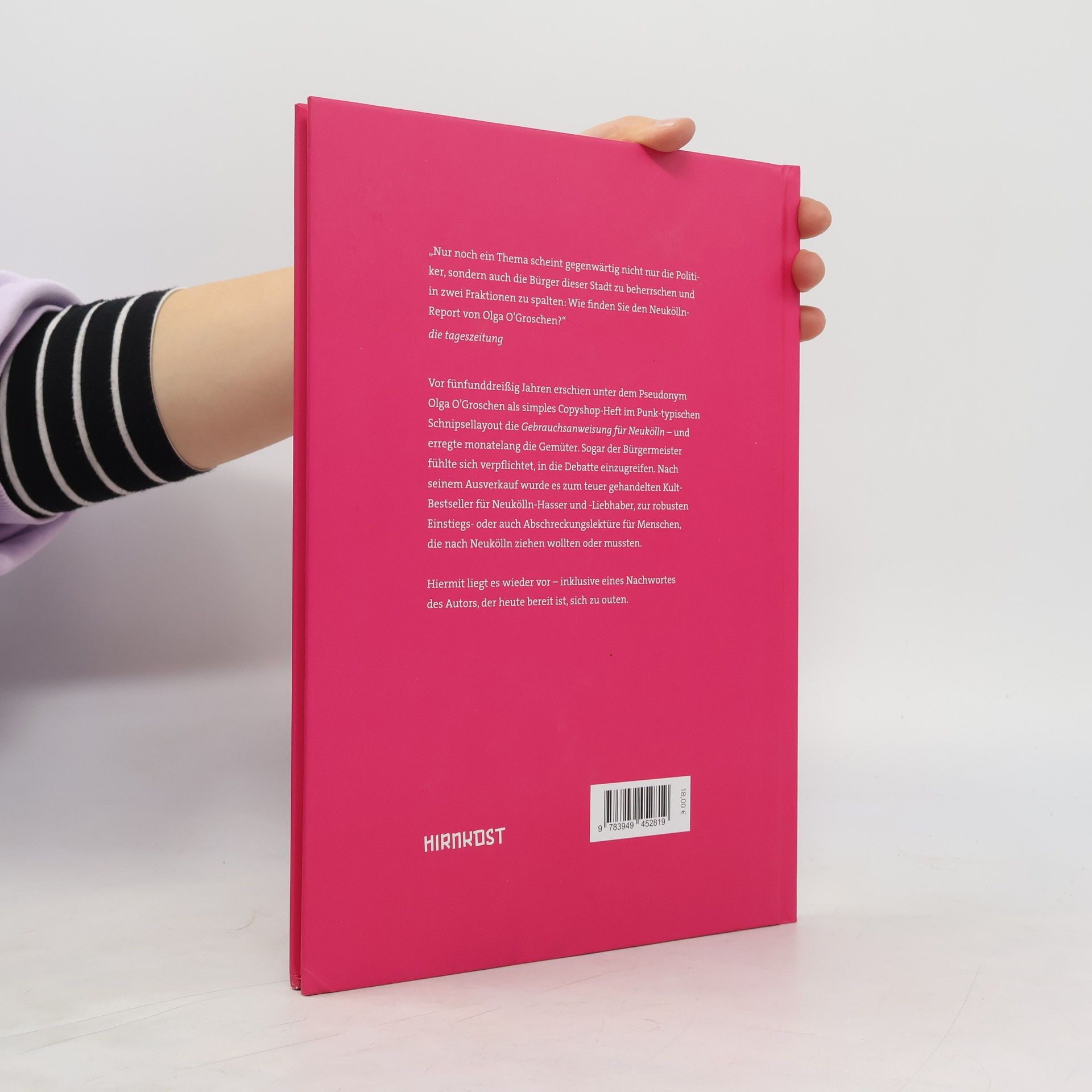 „Nur noch ein Thema scheint gegenwärtig nicht nur die Politi-ker, sondern auch die Bürger dieser Stadt zu beherrschen und in zwei Fraktionen zu spalten: Wie finden Sie den Neukölln- Report von Olga O’Groschen?“ die tageszeitung Vor fünfunddreißig Jahren erschien unter dem Pseudonym Olga O’Groschen als simples Copyshop-Heft im Punk-typischen Schnipsellayout die Gebrauchsanweisung für Neukölln – und erregte monatelang die Gemüter. Sogar der Bürgermeister fühlte sich verpflichtet, in die Debatte einzugreifen. Nach seinem Ausverkauf wurde es zum teuer gehandelten Kult-Bestseller für Neukölln-Hasser und -Liebhaber, zur robusten Einstiegs- oder auch Abschreckungslektüre für Menschen, die nach Neukölln ziehen wollten oder mussten. Hiermit liegt es wieder vor – inklusive eines Nachwortes des Autors, der heute bereit ist, sich zu outen.