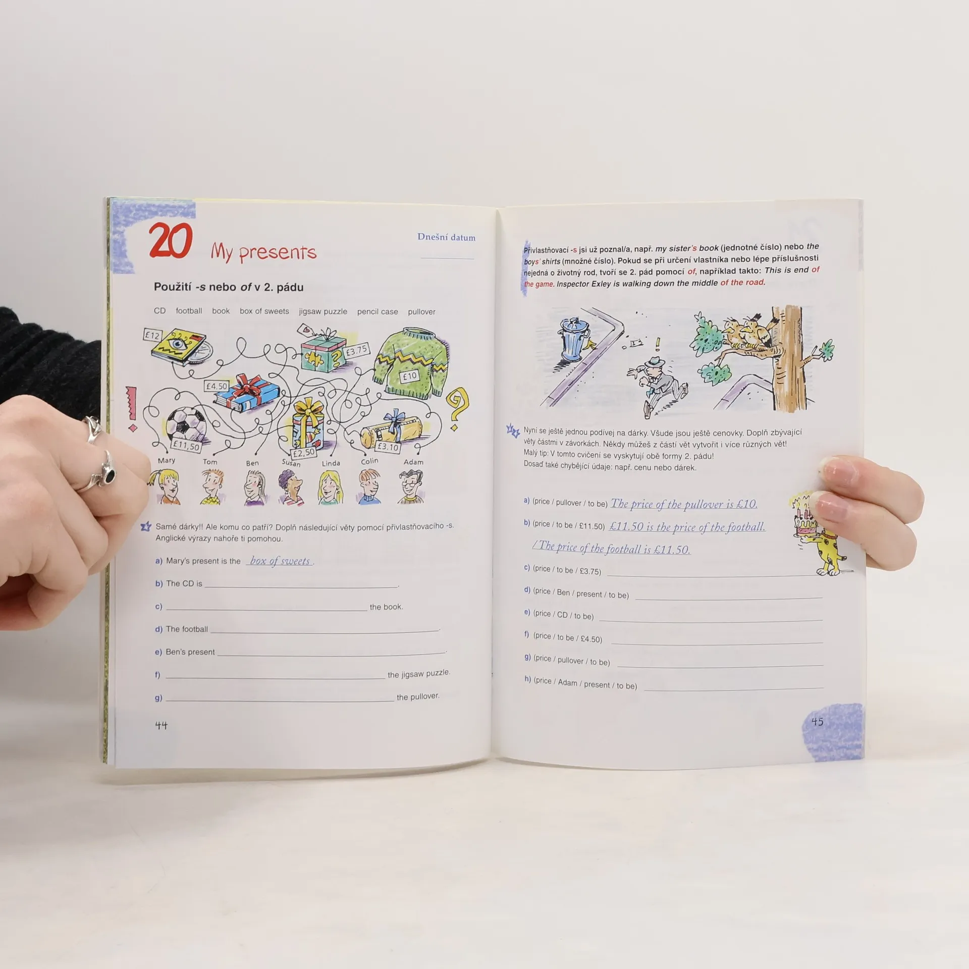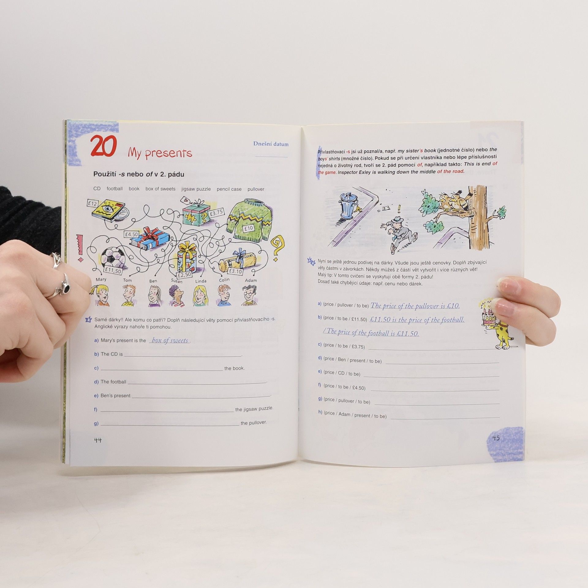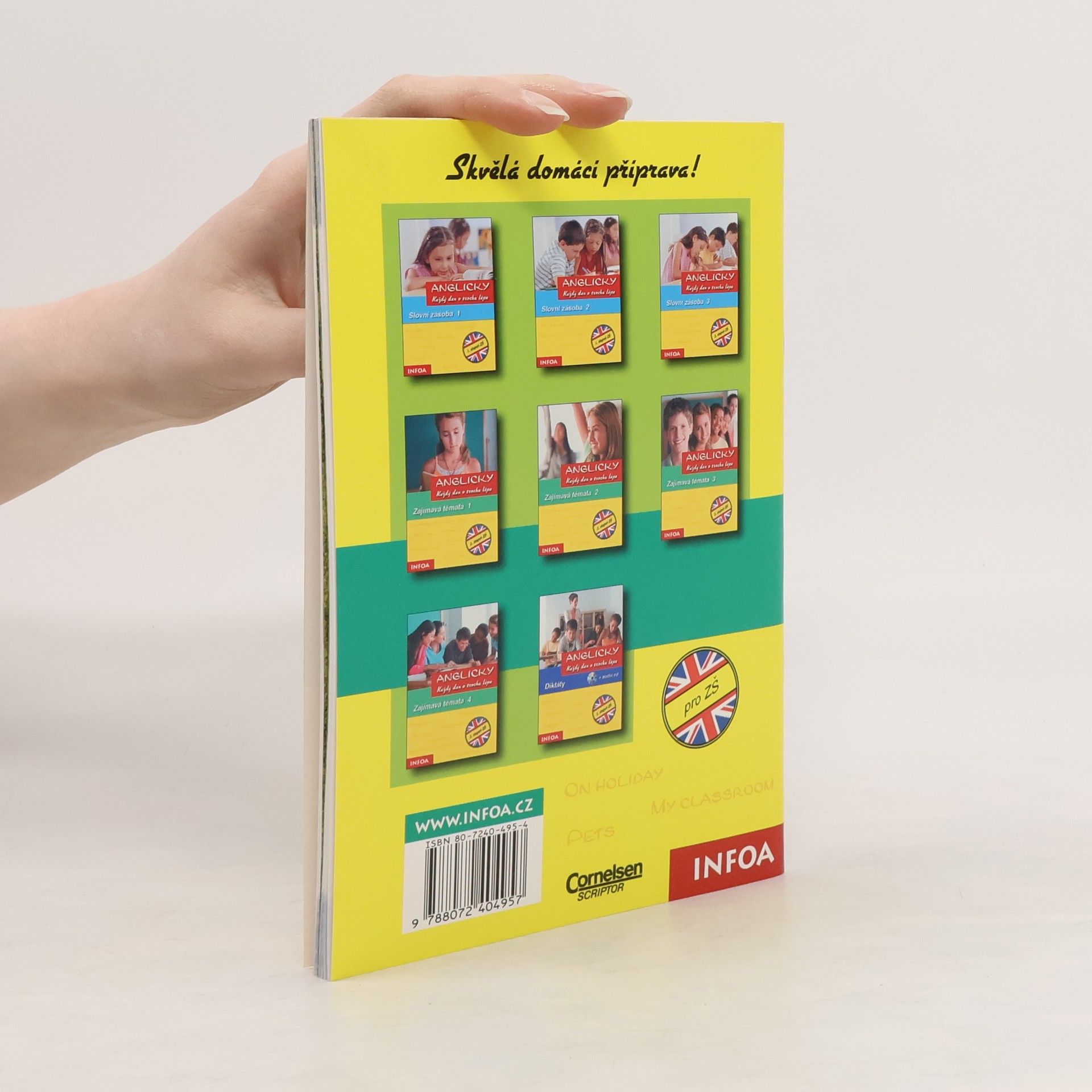 Tento sešit nabízí v každé kapitole jedno téma, jehož zpracování zabere čtvrt až půl hodiny. Jedna dvojstrana denně je pro procvičení zcela dostačující a píše se přímo do sešitu. Uprostřed sešitu je vložená část ŘEŠENÍ tak, aby se dala lehce vytrhnout. Budete ji tak mít stále po ruce a výsledky si jednoduše zkontrolujete. Titul obsahuje 27 témat (např. My family tree, My hobbies, My class room, My dictionary, Free time, Shopping, On holiday, In the restaurant, My presents, Around the year, atd.) a dvě lekce Take a break - Barvy a čísla a hra "Nahoru a dolů" a A word game. Ideální pro 2. stupeň ZŠ.