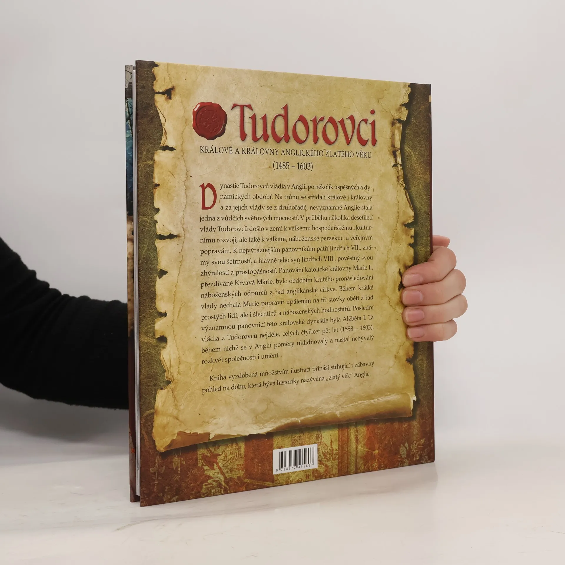 Dynastie Tudorovců vládla v Anglii po několik úspěšných a dynamických období. Na trůnu se střídali králové i královny a za jejich vlády se z druhořadé, nevýznamné Anglie stala jedna z vůdčích světových mocností. V průběhu několika desetiletí vlády Tudorovců došlo v zemi k velkému hospodářskému i kulturnímu rozvoji, ale také k válkám, náboženské perzekuci a veřejným popravám. K nejvýraznějším panovníkům patří Jindřich VII., známý svou šetrností, a hlavně jeho syn Jindřich VIII., pověstný svou zhýralostí a prostopášností. Panování katolické královny Marie I., přezdívané Krvavá Marie, bylo obdobím krutého pronásledování náboženských odpůrců z řad anglikánské církve. Během krátké vlády nechala Marie popravit upálením na tři stovky obětí z řad prostých lidí, ale i šlechticů a náboženských hodnostářů. Poslední významnou panovnicí této královské dynastie byla Alžběta I. Ta vládla z Tudorovců nejdéle, celých čtyřicet pět let (1558-1603), během nichž se v Anglii poměry uklidňovaly a nastal nebývalý rozkvět společnosti i umění. Kniha vyzdobená množstvím ilustrací přináší strhující i zábavný pohled na dobu, která bývá historiky nazývána "zlatý věk" Anglie.