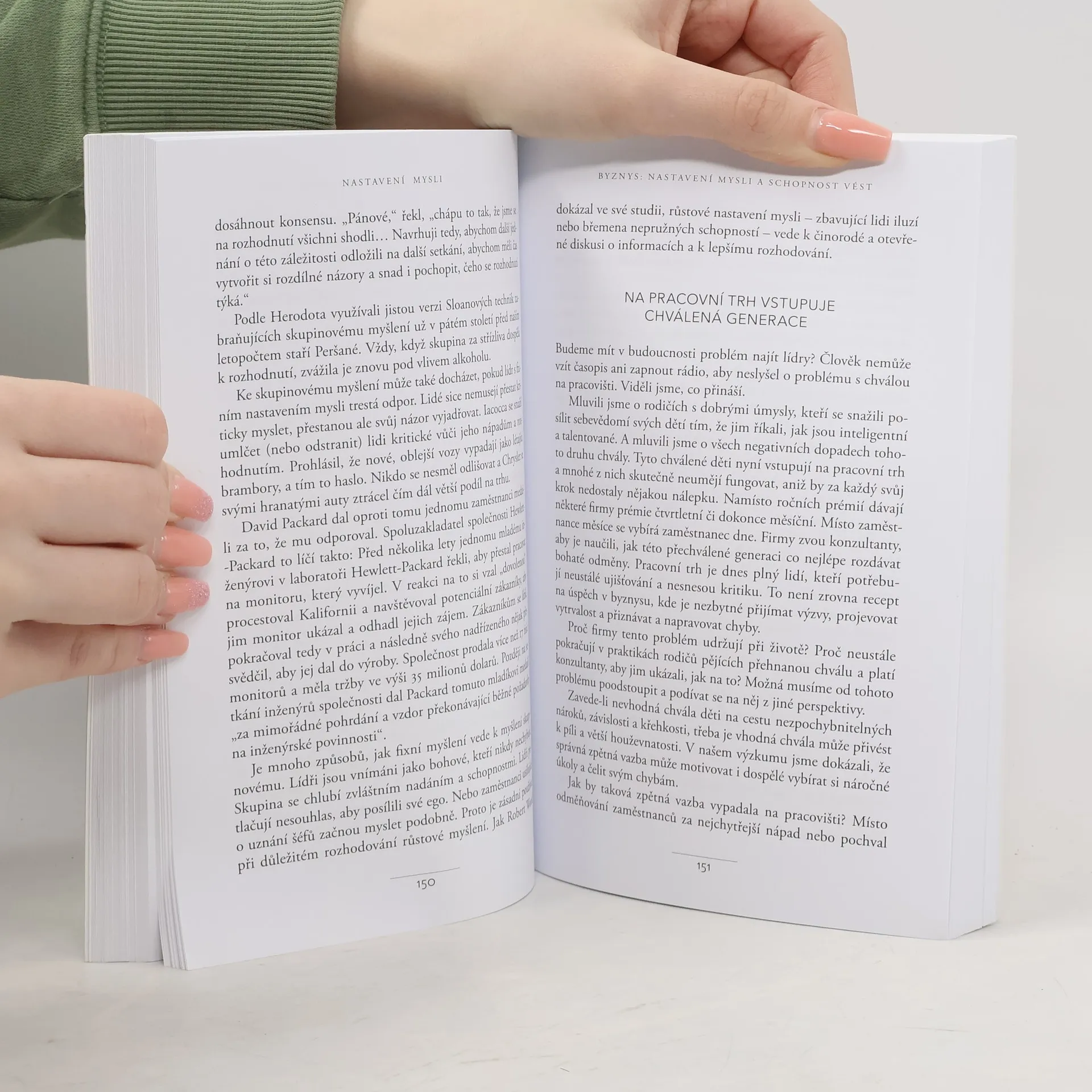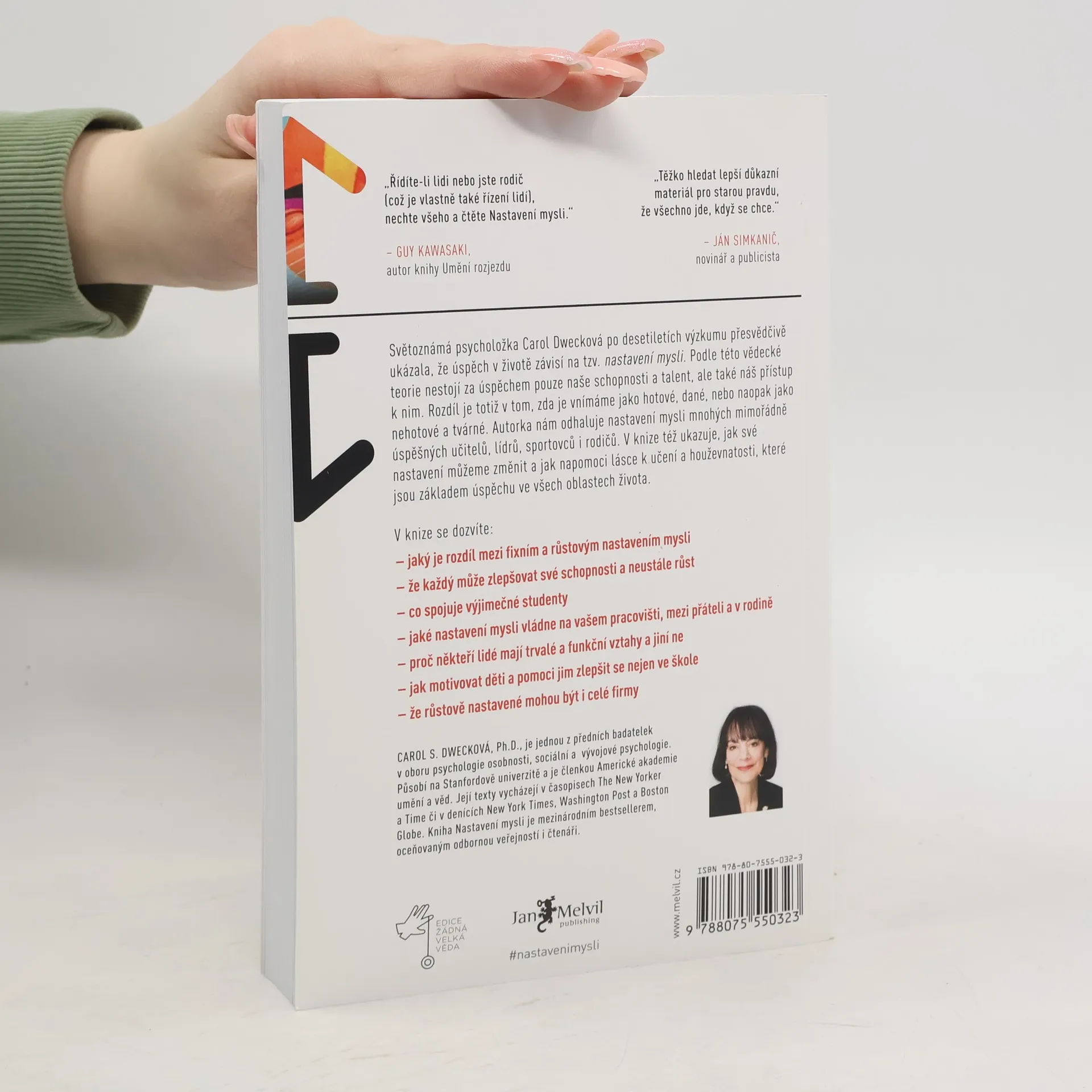 Jednoduchá myšlenka, kolem níž se tato kniha točí, a za níž stojí desítky let vědeckého výzkumu, se dá vyjádřit zhruba takto: úspěch máme ve svých hlavách. Profesorka Dwecková se svým týmem na Standfordské univerzitě zjistila, že svou přirozeností tíhneme ke dvěma relativně vyhraněným způsobům myšlení o sobě a své úspěšnosti: k myšlení růstovému a myšlení fixnímu (angl. „growth mindset“ a „fixed mindset“). To, které myšlení u nás převládá, pak významně ovlivňuje naši reálnou úspěšnost. Ke zjištěním Dweckové popsaným v knize patří nadějný závěr, že se navzdory své dispozici dokážeme během života změnit, a autorka ukazuje, jak na to: jak využít svůj plný potenciál. Chcete vědět, jak přesně se dva zmíněné typy myšlení projevují? Typickým rysem fixního myšlení je vzdávání se před překážkou, neschopnost přijímat zpětnou vazbu, špatný pocit při vnímání úspěchu ostatních, vyhýbání se výzvám a negativní postoj k úsilí jako takovému. Naopak růstové myšlení se projevuje vřelým vztahem k výzvám, vytrvalostí při čelení překážkám, pozitivním vztahem ke kritice. Růstově myslící člověk vnímá úsilí jako cestu k mistrovství a v úspěchu druhých vidí inspiraci.