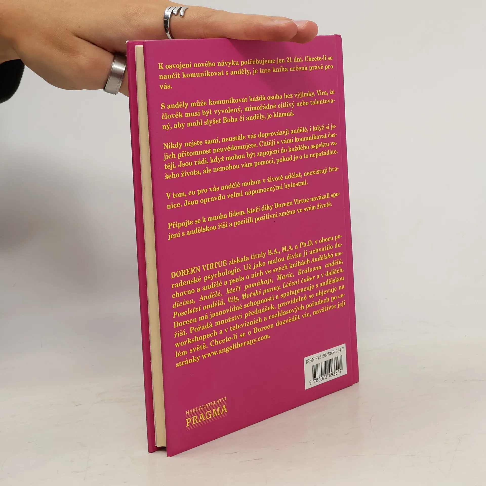 S anděly může komunikovat každá osoba bez výjimky. Víra, že člověk musí být vyvolený, mimořádně citlivý nebo talentovaný, aby mohl slyšet Boha či anděly, je klamná. K osvojení nového návyku potřebujeme jen 21 dní. Chcete-li se naučit komunikovat s anděly, je tato kniha určená právě pro vás. Připojte se k mnoha lidem, kteří díky Doreen Virtue navázali spojení s andělskou říší a pocítili pozitivní změnu ve svém životě.