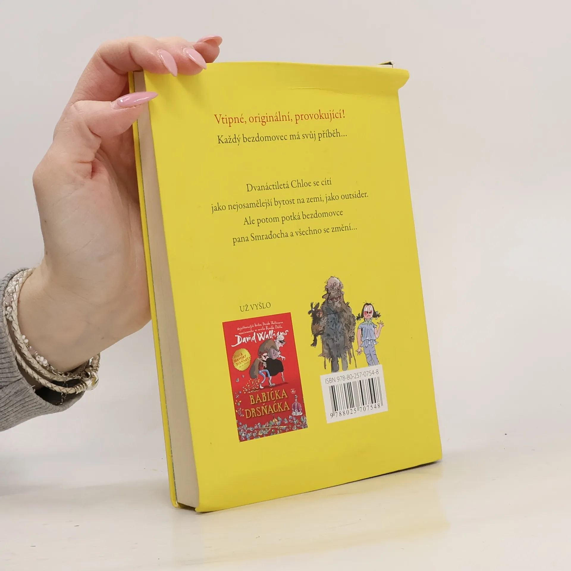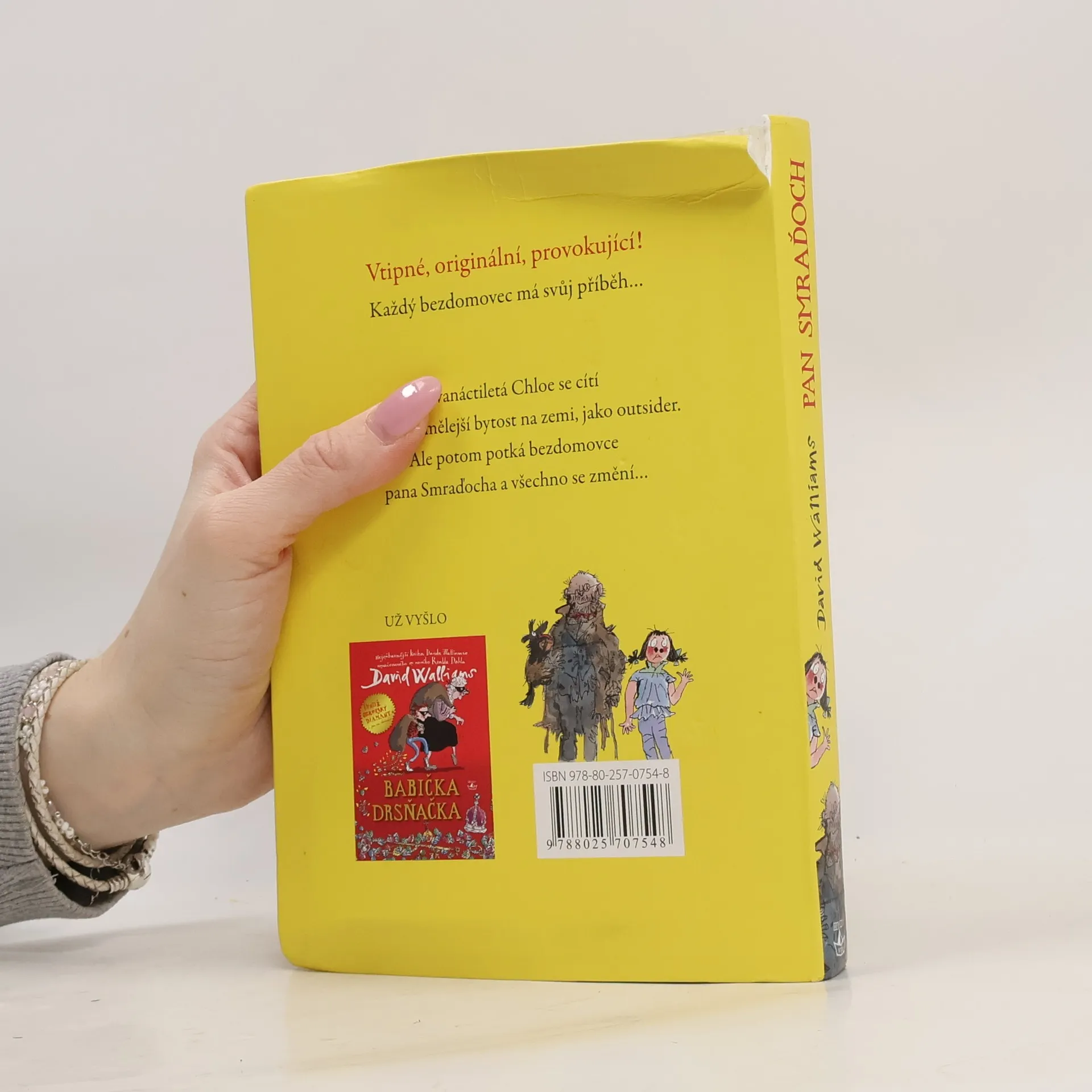 Další humorný příběh pro mladé čtenáře od autora knihy Babička drsňačka. Kouzelně neuctivý a zároveň dojemný příběh vypráví o tajemstvích, přátelství i docela obyčejném životě. Pan Smraďoch patří do kategorie hodně divných románových hrdinů. Žije na lavičce v parku a svému jménu dělá opravdu čest. Je to ten nejsmradlavější smraďoch pod sluncem. Dvanáctileté Chloe to ale rozhodně nebrání v tom, aby se s ním spřátelila. Jasně, páchne, ale na druhou stranu nikdy na ni nikdo nebyl tak milý jako on. A tak se Chloe rozhodne, že milého bezdomovce tajně ubytuje v kůlně na zahradě svých rodičů. Jenže schovejte takového smraďocha! Chloe brzy pozná, že některá tajemství můžou být velmi nebezpečná a od katastrofy je dělí jen malinký krůček.