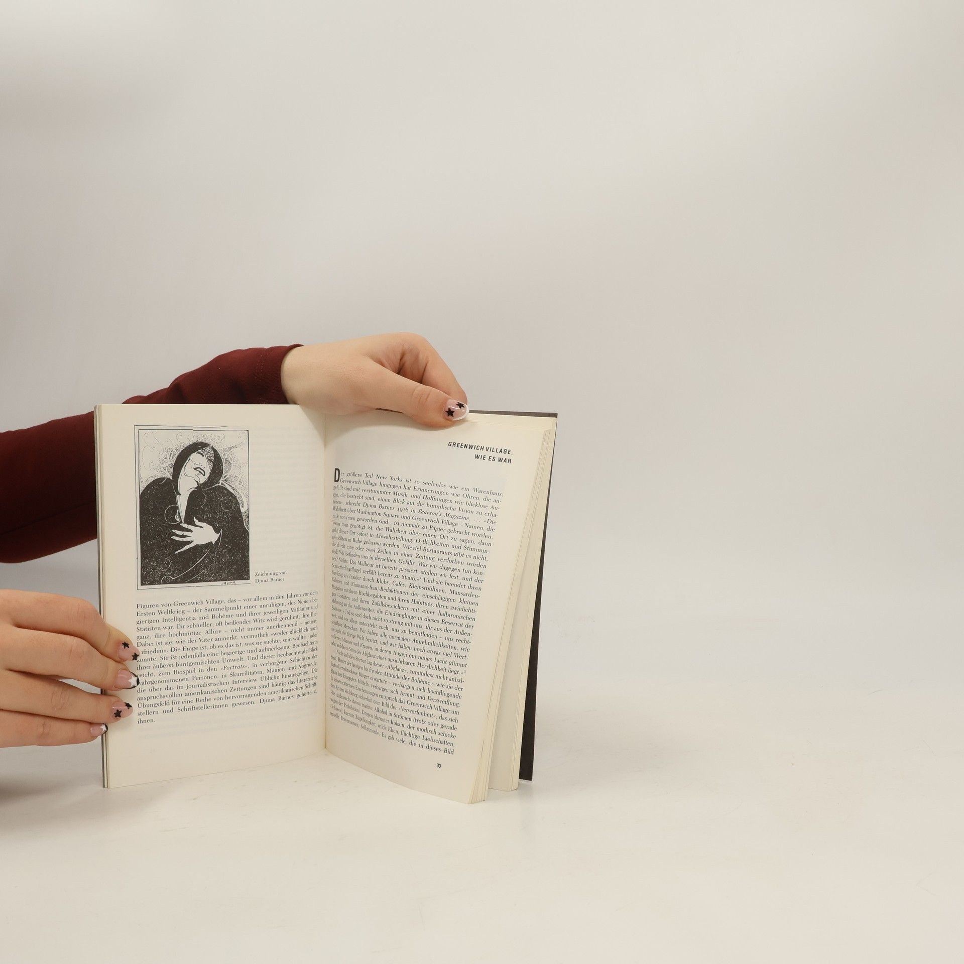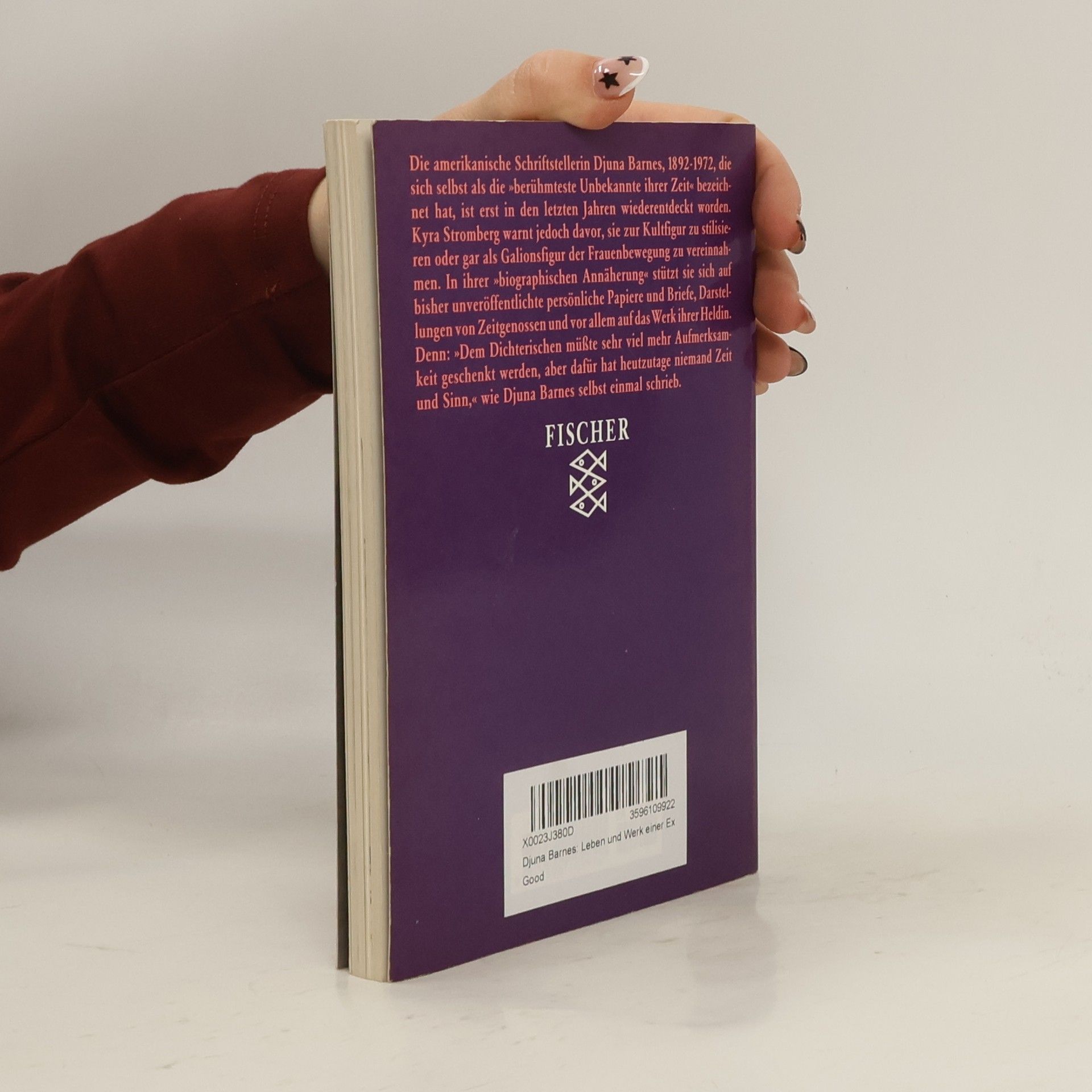 Djuna Barnes, 1892 in Cornwall-on-Hudson geboren und 1982 in New York gestorben: eine begabte junge Journalistin, die um den ersten Weltkrieg in New York respektlose Interviews, dekuvrierende Portraits, scharfsichtige short stories und Kurzdramen veröffentlichte. In Paris eine faszinierende Erscheinung von satirischem Witz, gern gesehen in den literarischen Cafés und Salons der Zwanziger Jahre. Eine passionierte Liebhaberin von Frauen – und bisweilen auch Männern –, die den Irrungen und Wirrungen der Liebe im Leben meist erlag und sie literarisch mit Ironie bezwang oder tragisch deutete. Eine große, lange verkannte Schriftstellerin, die nach einem unruhigen Leben als menschenscheue Exzentrikerin starb.