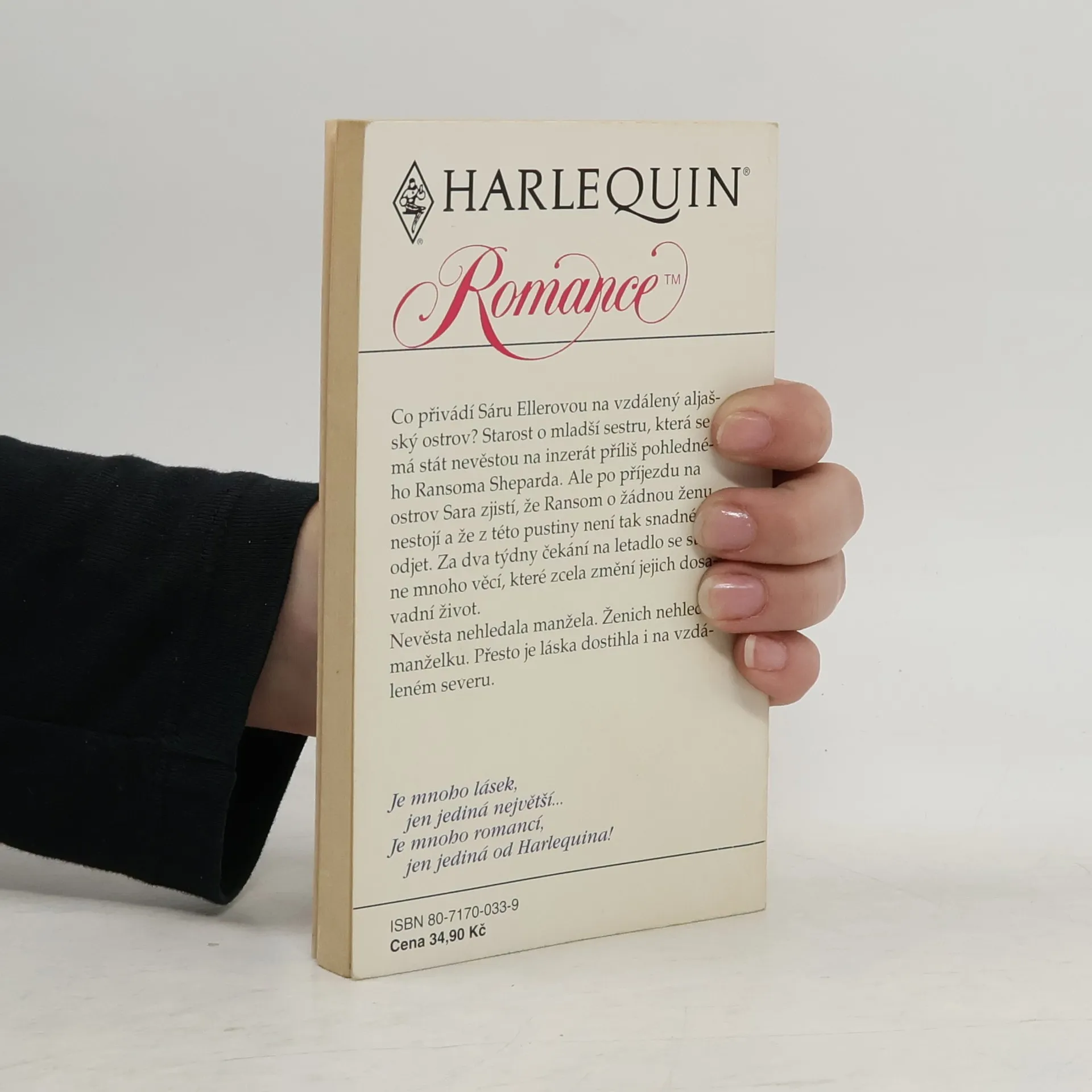 Co přivádí Sáru Ellerovou na vzdálený aljašský ostrov? Starost o mladší sestru, která se má stát nevěstou na inzerát příliš pohledného Ransoma Sheparda. Ale po příjezdu na ostrov Sara zjistí, že Ransom o žádnou ženu nestojí a že z této pustiny není tak snadné odjet. Za dva týdny čekání na letadlo se stane mnoho věcí, které zcela změní jejich dosavadní život. Nevěsta nehledala manžela. Ženich nehledal manželku. Přesto je láska dostihla i na vzdáleném severu.