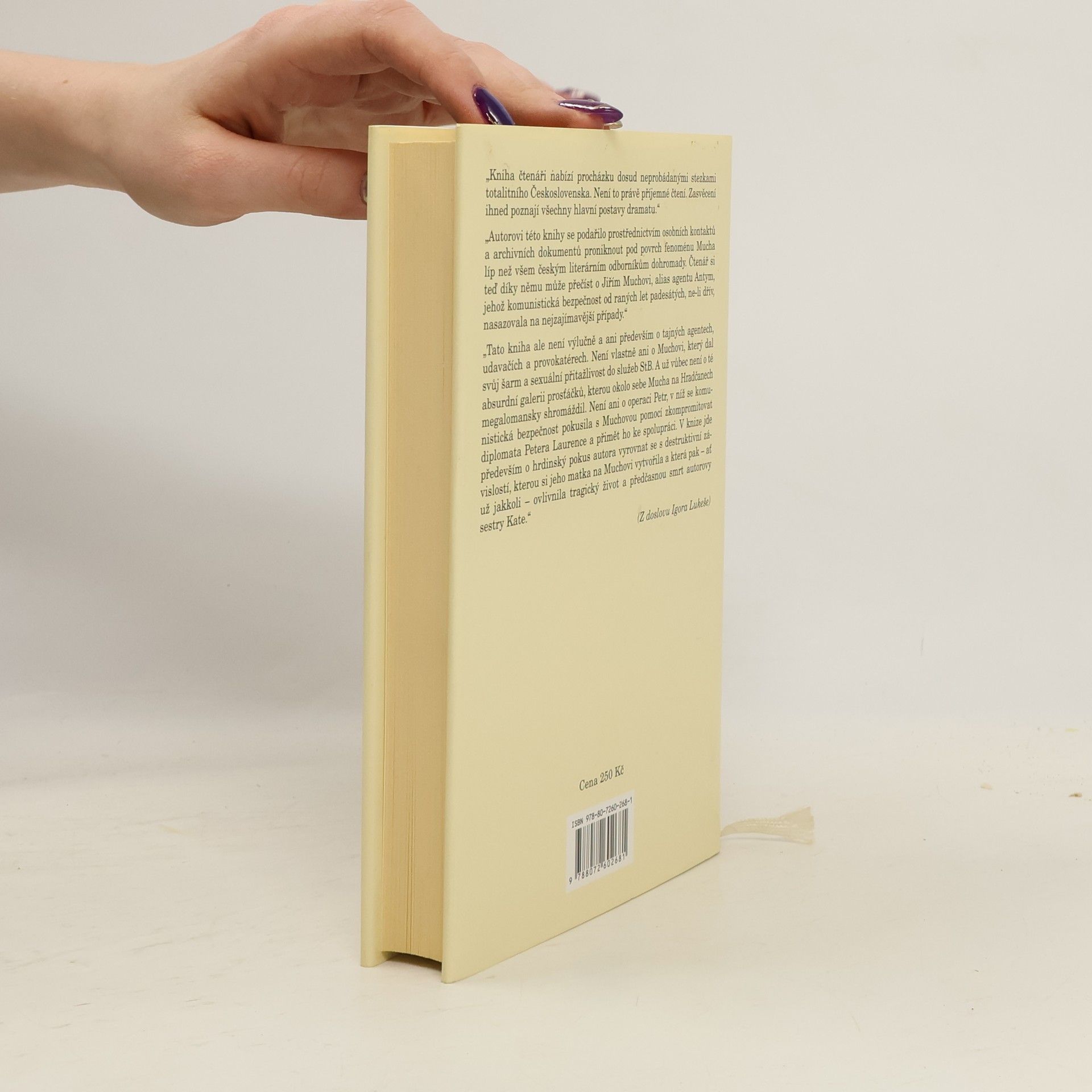 Autobiografická kniha novináře Charlese Laurence, jehož otec byl britským diplomatem, zachycuje příběh rodiny žijící v Praze v padesátých letech, což mělo na jejich životy zásadní dopad. Autor, jako malý chlapec, vnímal jen fragmenty událostí kolem sebe, což dodává knize kouzlo a hloubku. Po roce 1989 se Laurence vrací do Prahy, aby na základě rozhovorů a dokumentů odhalil důvody dočasného odvolání svého otce a jeho vliv na matku a sestru. Dva rozhovory s Geraldinou Muchovou, manželkou Jiřího Muchy, rámují celý příběh. Autor zjišťuje, že milostná aféra jeho matky s Jiřím Muchou byla součástí operace Státní bezpečnosti, v níž Mucha hrál roli "společenského agenta". Kniha se tak stává "klíčovým románem", v němž se objevují známé osobnosti české kultury a jejich role ve špionážní hře studené války. Laurence poskytuje nový pohled na Muchovu činnost za komunistického režimu a na mechanismy, jimiž Státní bezpečnost získávala informace a kontrolovala občany. Jiří Mucha, syn Alfonse Muchy, byl novinář, spisovatel, vězeň komunistického režimu a pozdější předseda československého PEN klubu. Kniha je přeložena z anglického originálu a obsahuje fotografii Jiřího Muchy.