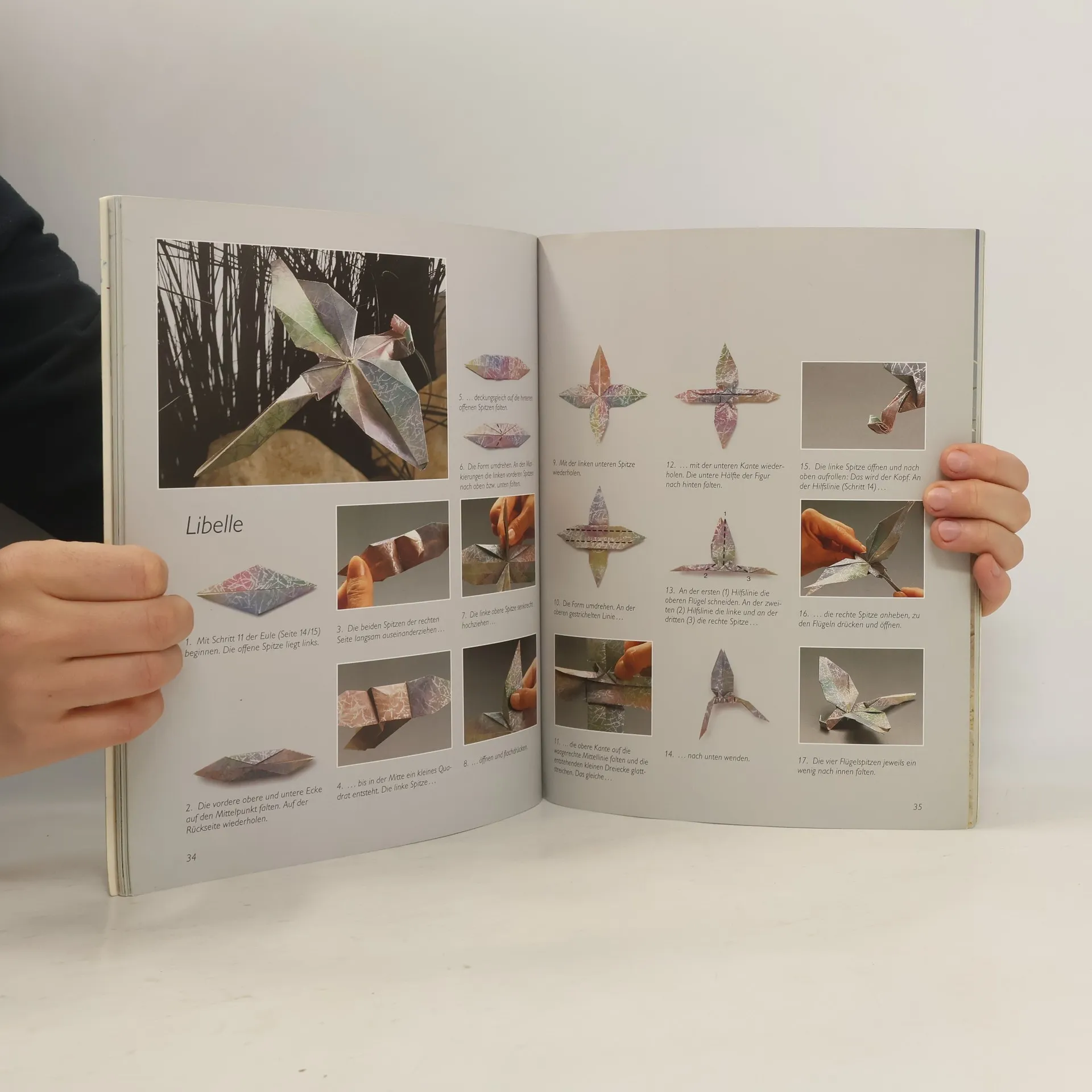 Exakte Faltanleitungen (Farbfotos) zu 33 originellen Papierfiguren; für geschickte Bastler.
