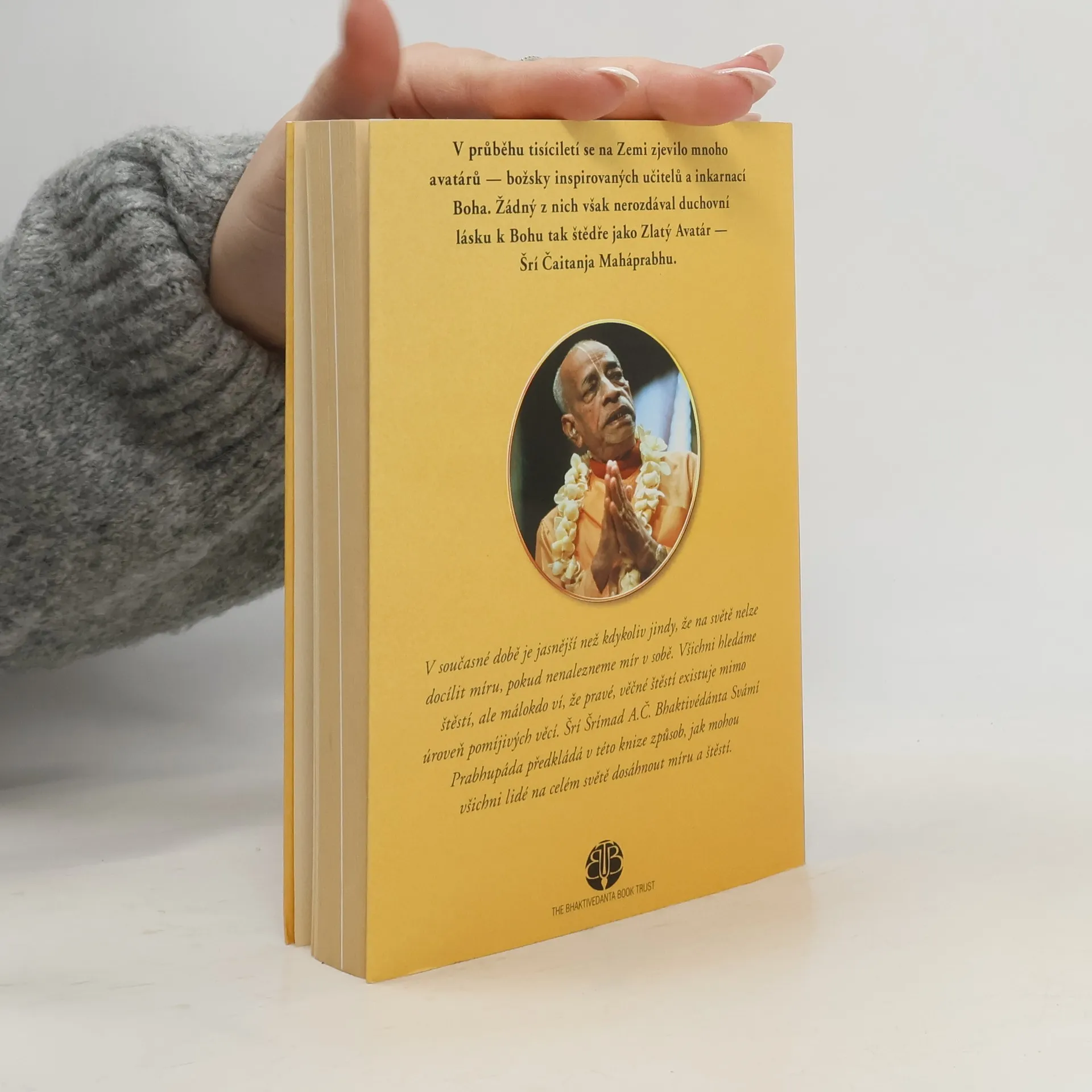 Šrí Šrímad A. Č. Bhaktivédanta Swami Prabhupáda Tato kniha popisuje život a učení Šrí Čaitanji Maháprabhua, který před pěti sty léty v Indii vlastním příkladem ukázal jediný praktický způsob seberealizace pro tento věk - zpívání Haré Kršna mahá-mantry. V současné době je jasnější než kdykoliv jindy, že nelze docílit míru na světě, dokud nenajdeme mír v sobě. Všichni hledáme štěstí, ale nikdo neví, co pravé štěstí je - ve skutečnosti jsou pouze něktěří lidé šťastní, neboť málokdo ví, že věčné štěstí existuje mimo úroveň pomíjivých věcí. A. Č. Bhaktivédanta Swami Prabhupáda předkládá v této knize způsob, jak všichni lidé na celém světě mohou dosáhnout míru a štěstí. Vydal: The Bhaktivedanta Book Trust