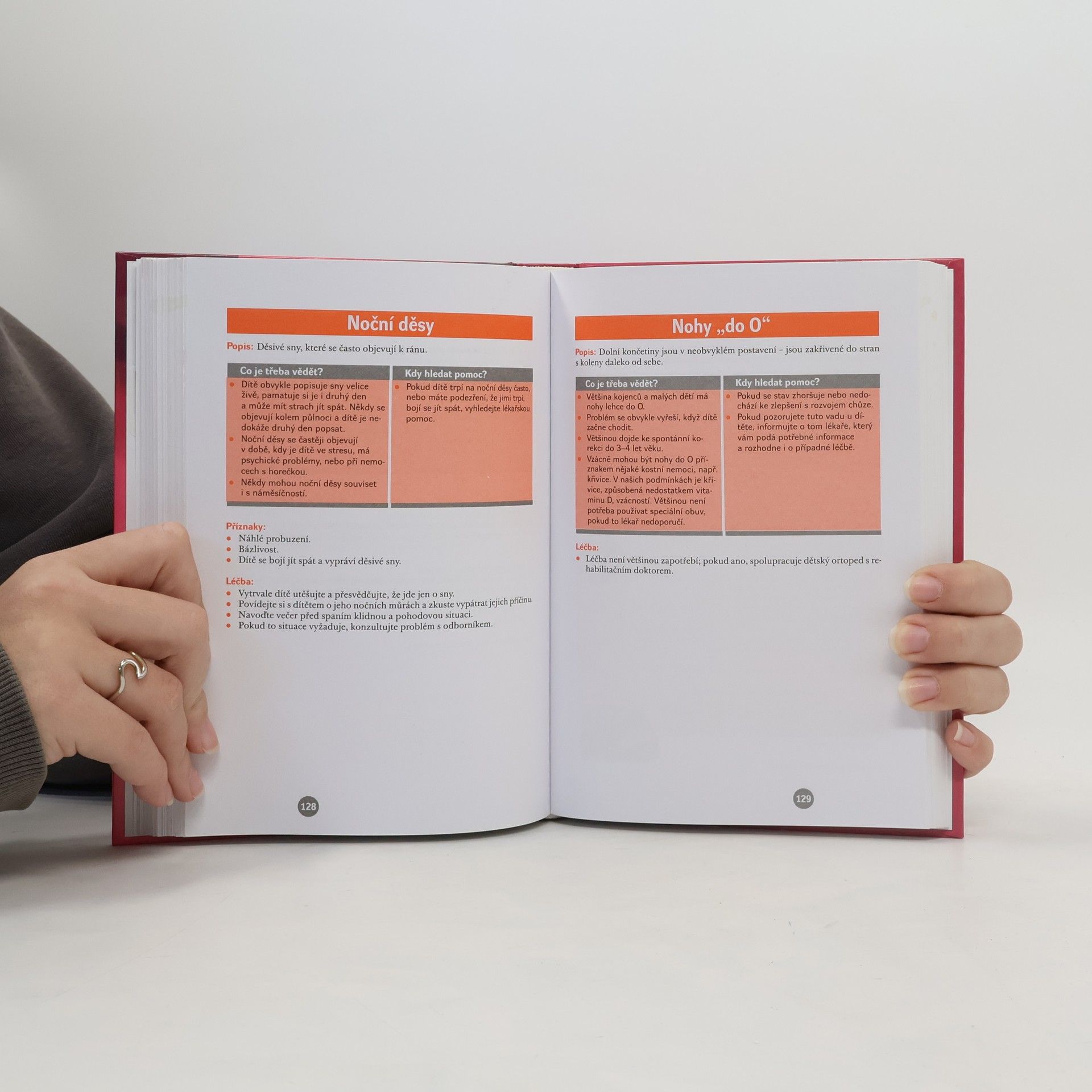 Abecedně řazený seznam více než 200 běžných dětských nemocí, úrazů, vrozených vad a dalších zdravotních problémů. U každé položky jsou uvedeny příznaky jednotlivých onemocnění, základní poznatky, které by rodiče měli o problému vědět, doporučení pro základní pomoc, příp. upozornění, kdy je nutná lékařská péče, způsob a možnosti léčby i prevence.V úvodu jsou rady, lektorované českou dětskou lékařkou, pro základní zdravotní péči a prevenci, přehled preventivních prohlídek, očkovací kalendář, jsou uvedeny kontakty důležité při akutních zdravotních problémech (otrava houbami, léky apod.), vývoj a zásady péče o chrup, doporučení pro zdravou výživu. Kniha nemá nahradit lékaře, poslouží však k rychlé orientaci při onemocnění dítěte a upozorní na to, co mohou rodiče pro uzdravení udělat sami.