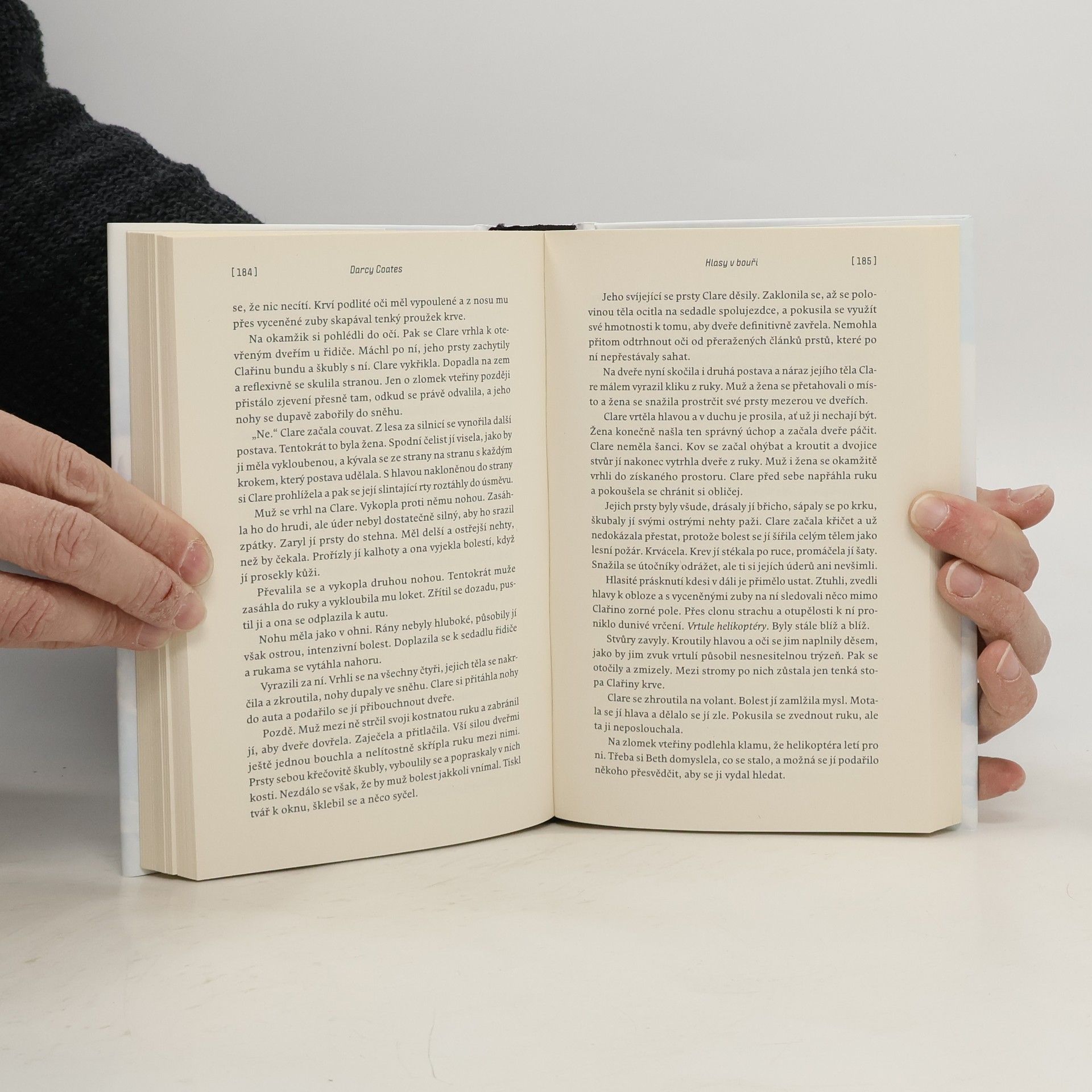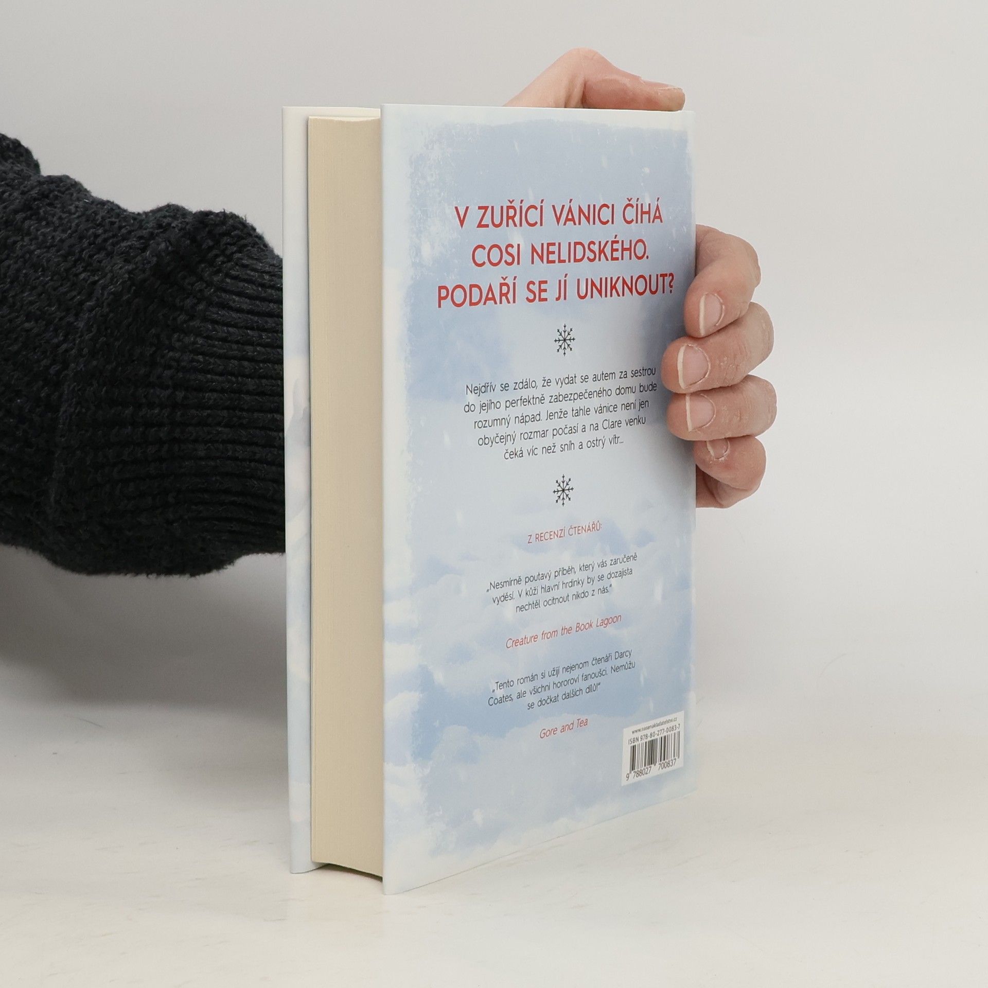 Clare si vybavila zimu. A opuštěná auta u krajnice, hračky poházené na silnici. Vybavila si nekonečnou vánici a hrůzu, kterou nedokázala vysvětlit. A pak už nic… Když se probudila, ležela celá rozbolavělá a vyděšená v prastarém, ponurém domě, připomínajícím spíše starodávné šlechtické sídlo. U postele seděl neznámý mladý muž a tvrdil, že měla ve vánici autonehodu. Našel ji a přinesl do svého domu. Clare by ze všeho nejraději utekla, ale je až příliš slabá a vánice za okny stále nepolevuje. Uvěznila je v domě a Clare nezbývá než čekat. Mladík se k ní chová mile, ale Clare si není jistá, nakolik mu může důvěřovat? On tvrdí, že jsou v domě sami, ale ona má pocit, že vidí a slyší věci, které naznačují, že kolem někdo slídí a čeká na příležitost. Napětí stále stoupá a s ním i pocit, že se z nich stala lovná zvěř. Clare dochází k závěru, že její nehoda nebyla náhodná. Venku za dveřmi na ni něco číhá, něco čeká, až opustí bezpečí kamenných zdí… něco strašného, nelidského a krutého.
