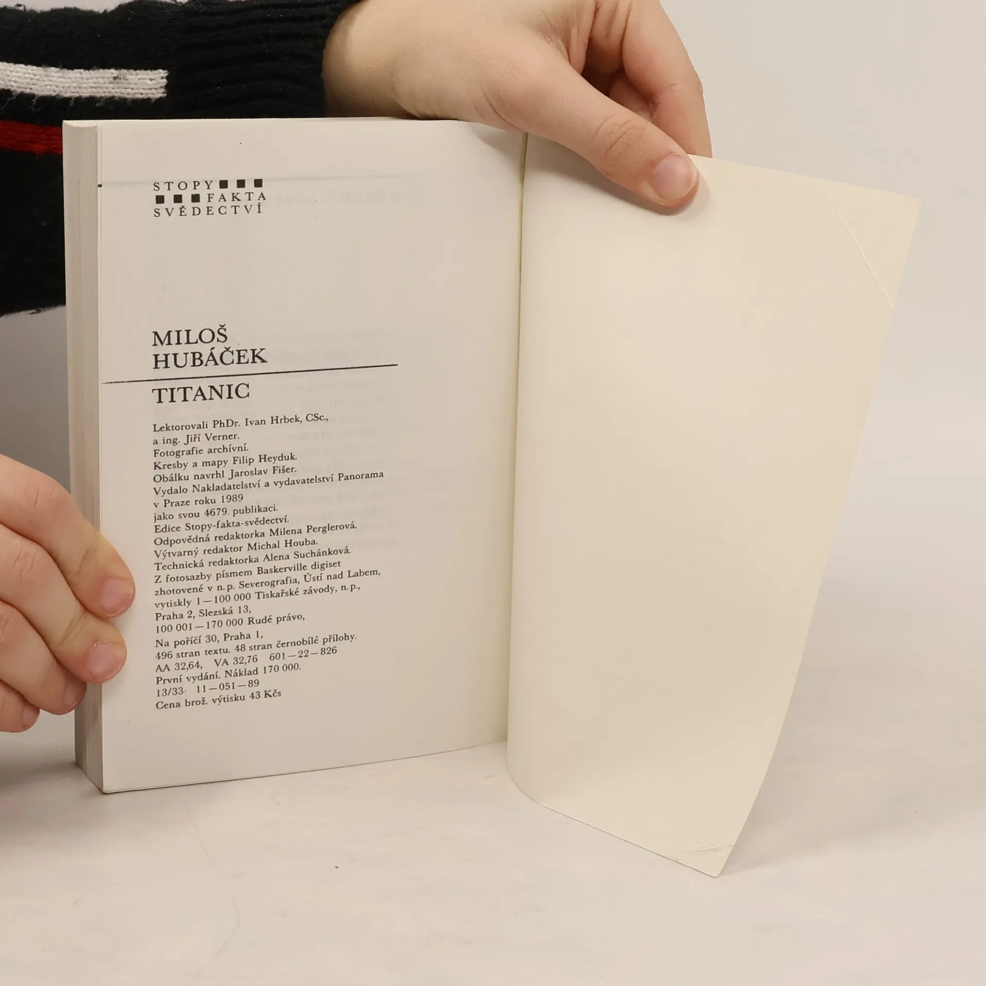 Titanic byl největší lodí světa své doby, měl to být triumf lidského génia a průmyslového věku. Byl též výrazem soupeření transoceánských společností, které se předháněly ve svých nabídkách. Loď dlouhá téměř 260 metrů měla pojmout až tři tisíce pasažerů, bylo to něco dosudnevídaného. 10. dubna 1912 vyplul ze Southamptonu na pravidelné lince do New Yorku, aby se představil v plné kráse všem lidem i mořským vlnám. Nikdo s nadšených a řádně hrdých pasažérů a členů posádky netušil, že je to také jeho poslední plavba. Co se odehrávalo na palubě, v podpalubích, na kapitánském můstku během oněch osudových chvil? 1. vydání. Edice: Stopy, fakta, svědectví Kresby a mp. Filip Heyduk. Obálka Jaroslav Fišer.