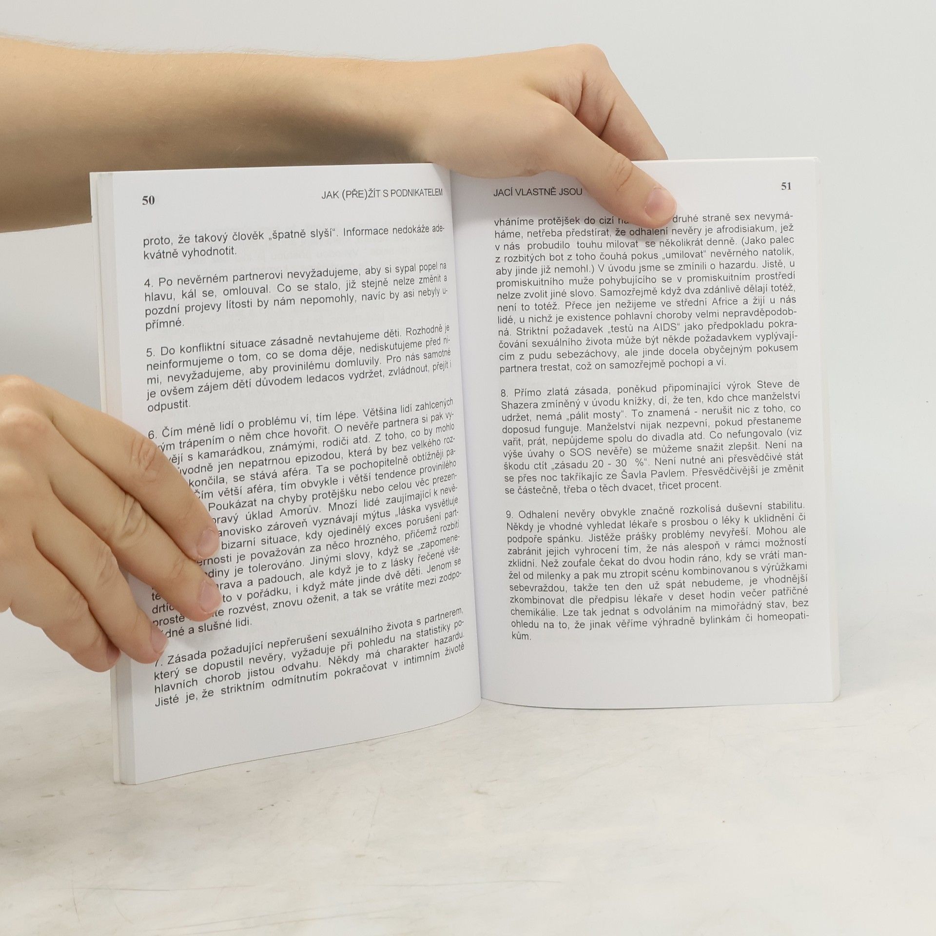 Zkušený manželský poradce na základě rozboru problémů v podnikatelských manželstvích radí (převážně ženám), jak si počínat.