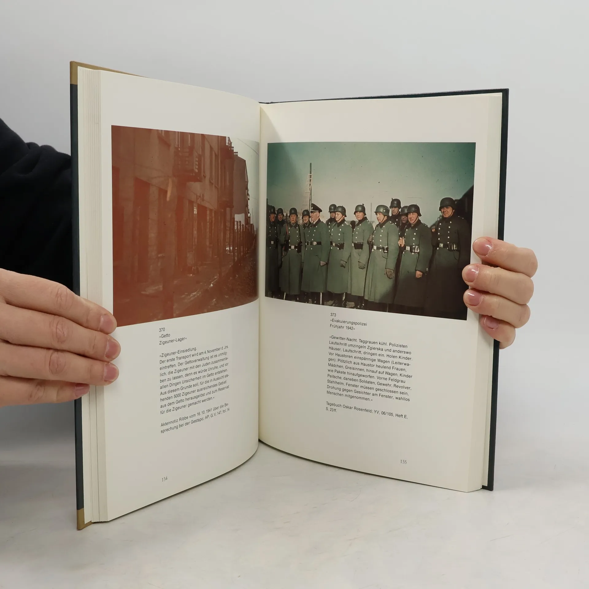 Die deutsche Gettoverwaltung, „ehrenwerte Beamte und Geschäftsleute“, sorgte vier Jahre lang für den „ordentlichen“ Ablauf der „Vernichtung durch Arbeit“ im „Dezimierungsgetto“. 1940 begann der Leiter der Finanzbuchhaltung der deutschen Gettoverwaltung, der Salzburger Walter Genewein, im Getto Farbaufnahmen zu machen. Farbdias mit Straßenszenen, vom Friedhof und von der Verwaltung, und natürlich von der mannigfaltigen Produktion im Getto. Eine einzigartige Dokumentation, deren Lücken für sich sprechen. Wir sehen Menschen im Arbeitslager Pabianice, wie sie Kleider der Opfer von Chelmno durchsuchen müssen, doch wir sehen nicht, was dort geschah. Als Propaganda füre das profitable System der „Dezimierung durch Arbeit“ gedacht, sind diese Fotos Teil der deutschen Bürokratie des Todes. Konfrontiert mit den Dokumenten der Vernichtungspolitik brechen die Farbaufnahmen mit ihrer erschreckenden Alltäglichkeit die Sicherheit der historischen Distanz. Sie machen Ereignisse gegenwärtig, die manche schon gerne eine Ewigkeit zurückliegen sehen würden.