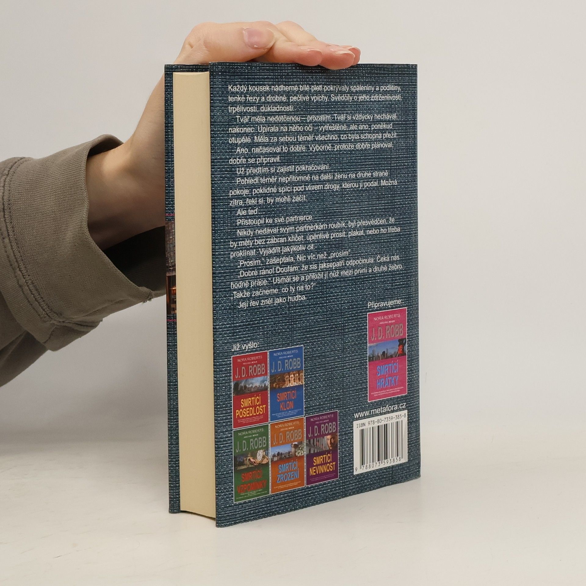 Poručík Dallasová návnadou pro sadistického vraha žen! Další pokračování populární řady Smrtící… napínavých detektivních příběhů z blízké budoucnosti. Před devíti lety, dlouho předtím, než se Eva Dallasová stala poručíkem newyorské policie, došlo k sérii neuvěřitelně brutálních vražd celé řady žen. Vrah je unesl, strašlivě zmučil a nakonec zabil. Policie ho však nedokázala dopadnout – jako by se propadl do země. Jenomže po čase je zpět! A tentokrát chce konkrétní ženu: Dallasovou. Což ale neznamená, že znovu nezabíjí i jiné. Nejdříve je objeveno jedno tělo, pak druhé a hodiny nemilosrdně odtikávají ke třetí vraždě… Eva se rozhodne pro nesmírně riskantní krok – nabídne sama sebe jako návnadu. Psychologický profil šíleného zabijáka začíná být stále přesnější a stále jasněji z něj vyhlíží tvář nelidského monstra. Evin sexy miliardářský manžel Roarke je jí i tentokrát nedocenitelnou oporou – a to i v nervy drásajícím vyvrcholení tohoto nejnebezpečnějšího a nejtěžšího případu celé Eviny kariéry.
