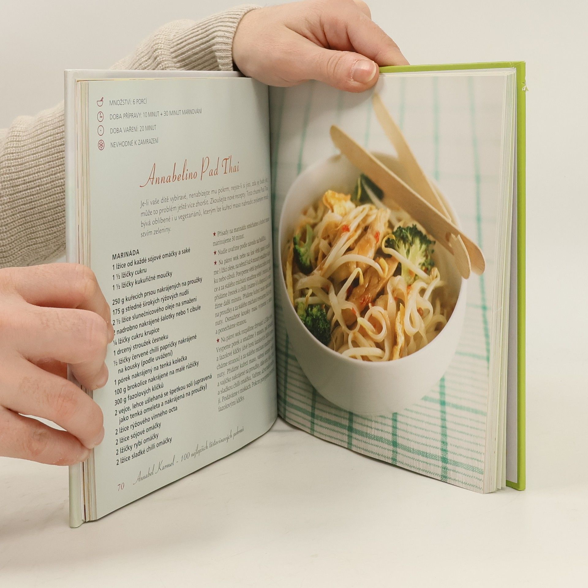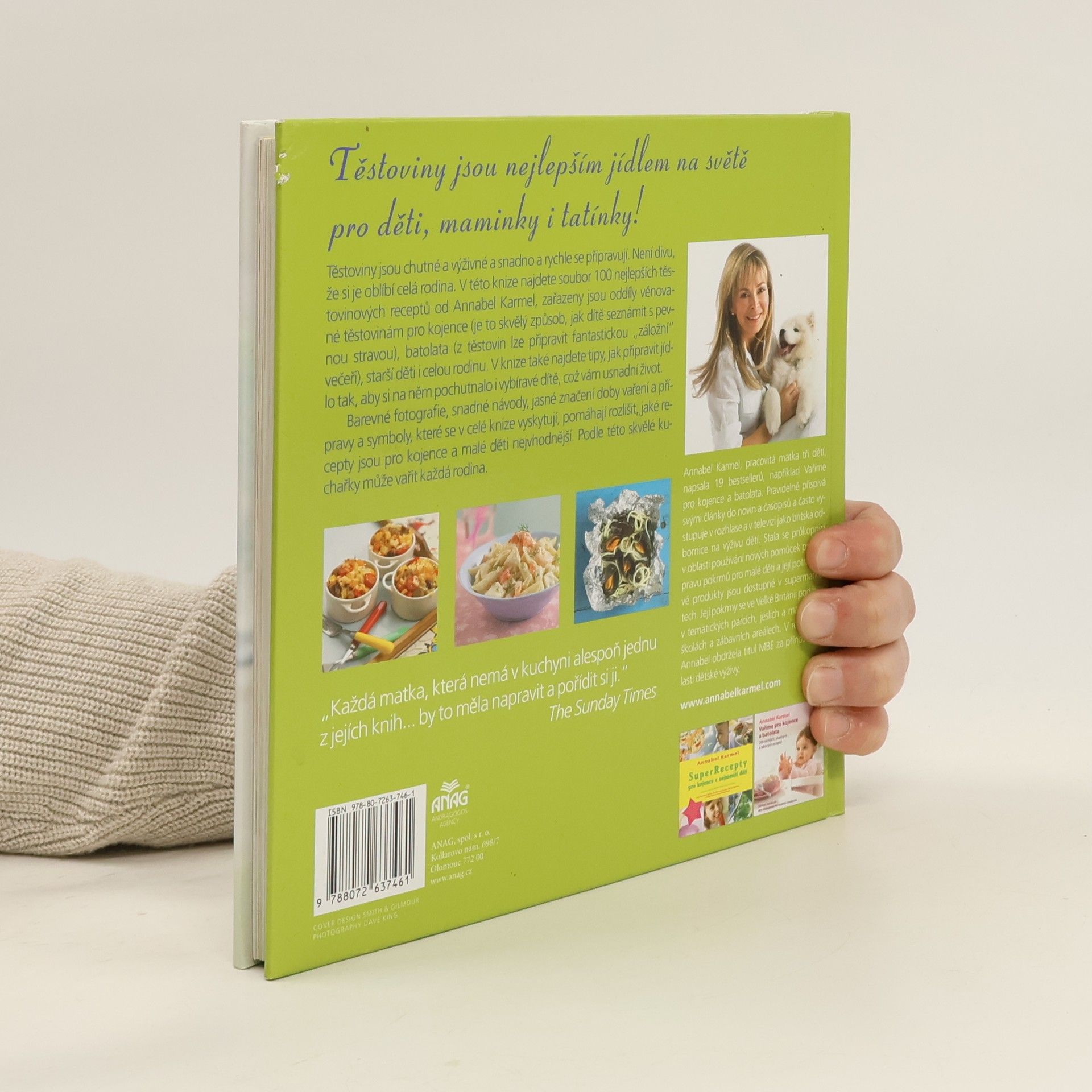 Těstoviny jsou chutné a výživné a snadno a rychle se připravují. Není divu, že si je oblíbí celá rodina. V této knize najdete soubor 100 nejlepších těstovinových receptů od Annabel Karmel, zařazeny jsou oddíly věnované těstovinám pro kojence (je to skvělý způsob, jak dítě seznámit s pevnou stravou), batolata (z těstovin lze připravit fantastickou „záložní“ večeři), starší děti i celou rodinu. Annabel Karmel si poradí i s vybíravými jedlíky. V knize 100 nejlepších těstovinových pokrmů také najdete tipy, jak připravit jídlo tak, aby si na něm pochutnalo i vybíravé dítě, což vám usnadní život. Srozumitelné a přehledné zpracování receptů. Barevné fotografie, snadné návody, jasné značení doby vaření a přípravy a symboly, které se v celé knize vyskytují, pomáhají rozlišit, jaké recepty jsou pro kojence a malé děti nejvhodnější. Podle této skvělé kuchařky může vařit každá rodina.