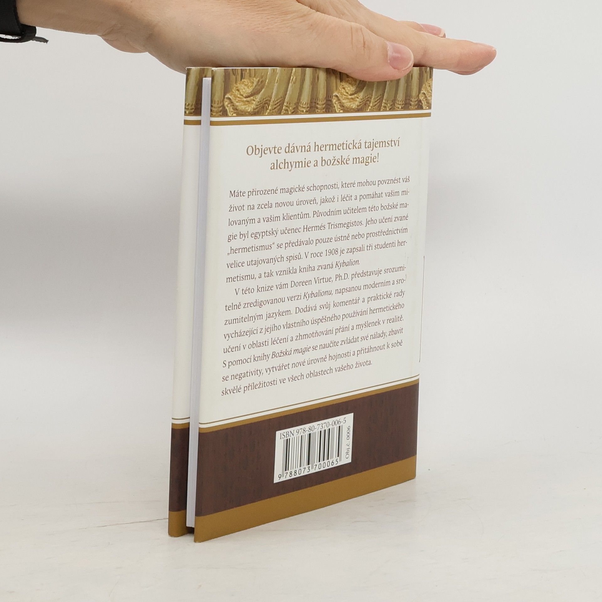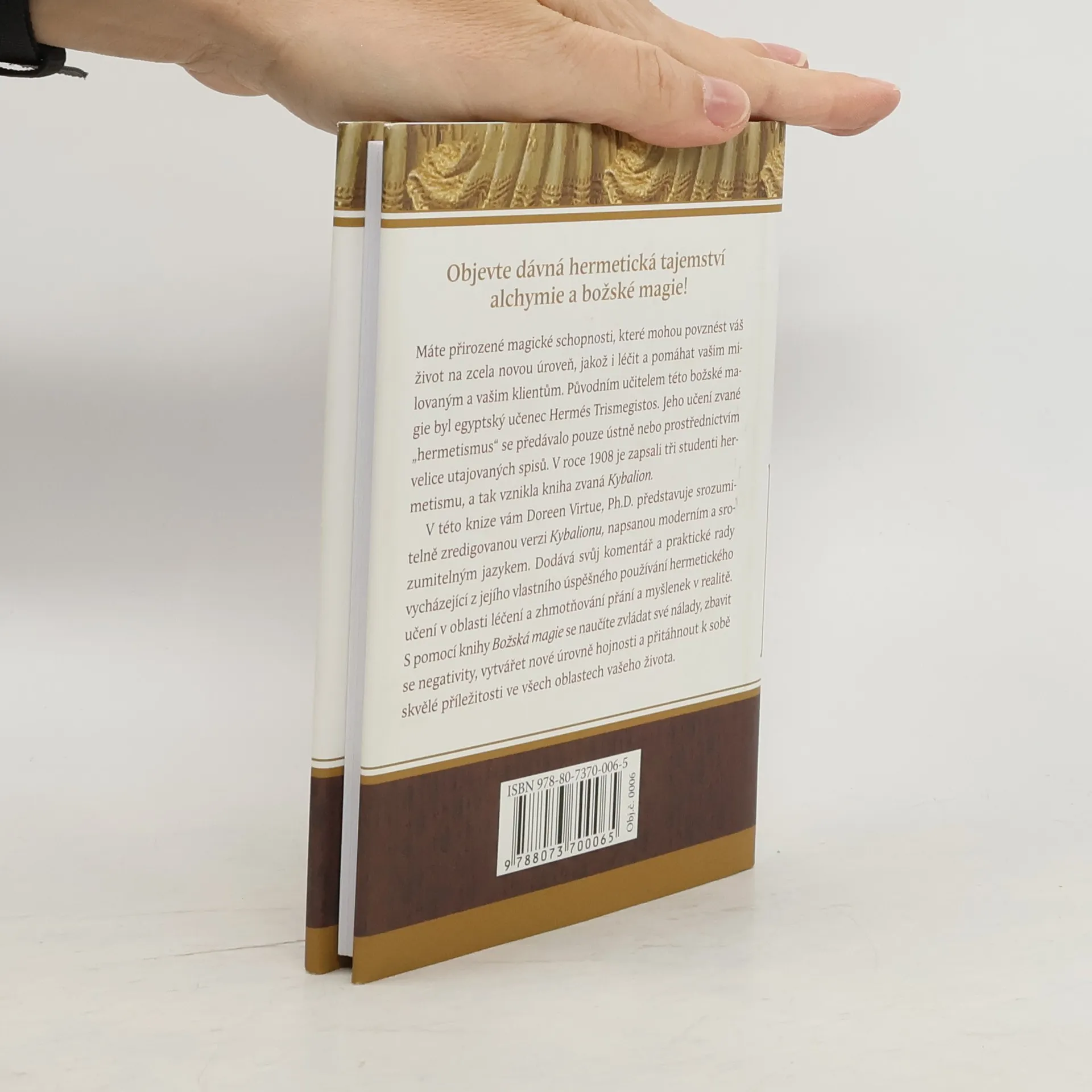 S podtitulem: Sedm posvátných tajemství manifestace, tato kniha nabízí nový výklad klasické hermetické alchymické rukověti Kybalion. Hmota je pro nás reálná, ačkoliv víme o atomech a mentální povaze Vesmíru. Můžeme ji ovládat pomocí vyšších sil, což je lepší než ignorovat její existenci. Zákony přírody jsou trvalé, ale můžeme je překonat aplikací vyšších zákonů. Vesmír a jeho zákony jsou reálné, ale zároveň se neustále mění, což je činí z absolutního hlediska nereálnými. Musíme však žít, jako by byl hmotný svět skutečný. Největší přírodní silou v tomto světě je moc našich myšlenek, tedy Mentalismus. Každý z nás má přirozené magické schopnosti, které mohou zlepšit náš život a pomoci našim blízkým. Učení hermetismu, předávané egyptským učencem Hermés Trismegistos, bylo dlouho utajováno. V roce 1908 bylo zapsáno třemi studenty, což vedlo k vzniku Kybalionu. Doreen Virtue, Ph.D., přináší moderní a srozumitelnou verzi Kybalionu, doplněnou o vlastní komentáře a praktické rady. Díky této knize se naučíte ovládat své nálady, zbavit se negativity a přitáhnout skvělé příležitosti ve všech oblastech vašeho života.
