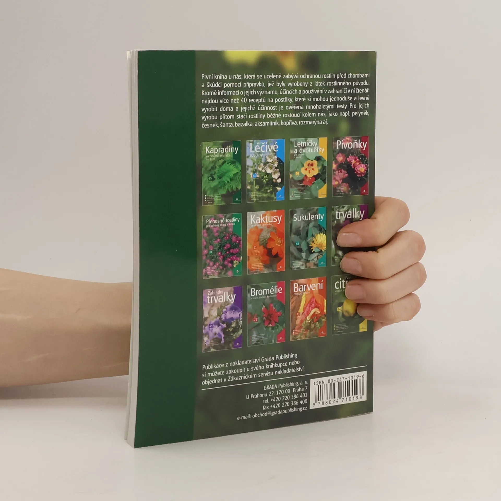 První kniha u nás, která se uceleně zabývá ochranou rostlin před chorobami a škůdci pomocí přípravků, jež byly vyrobeny z látek rostlinného původu. Čtenáři v knize najdou jak informace o významu a používání botanických pesticidů v zahraničí, tak především více než 40 receptů na postřiky, které si mohou jednoduše a levně vyrobit doma a jejichž účinnost je ověřena mnohaletými testy. Pro jejich výrobu přitom stačí rostliny běžně rostoucí kolem nás, jako např. pelyněk, česnek, šanta, bazalka, aksamitník, kopřiva, rozmarýna aj. Autorem publikace je náš přední odborník, spolupracující s řadou zahraničních firem, a napsal ji pro všechny pěstitele rostlin, jak profesionální, tak amatérské, kteří se chtějí vyhnout chemickým prostředkům.