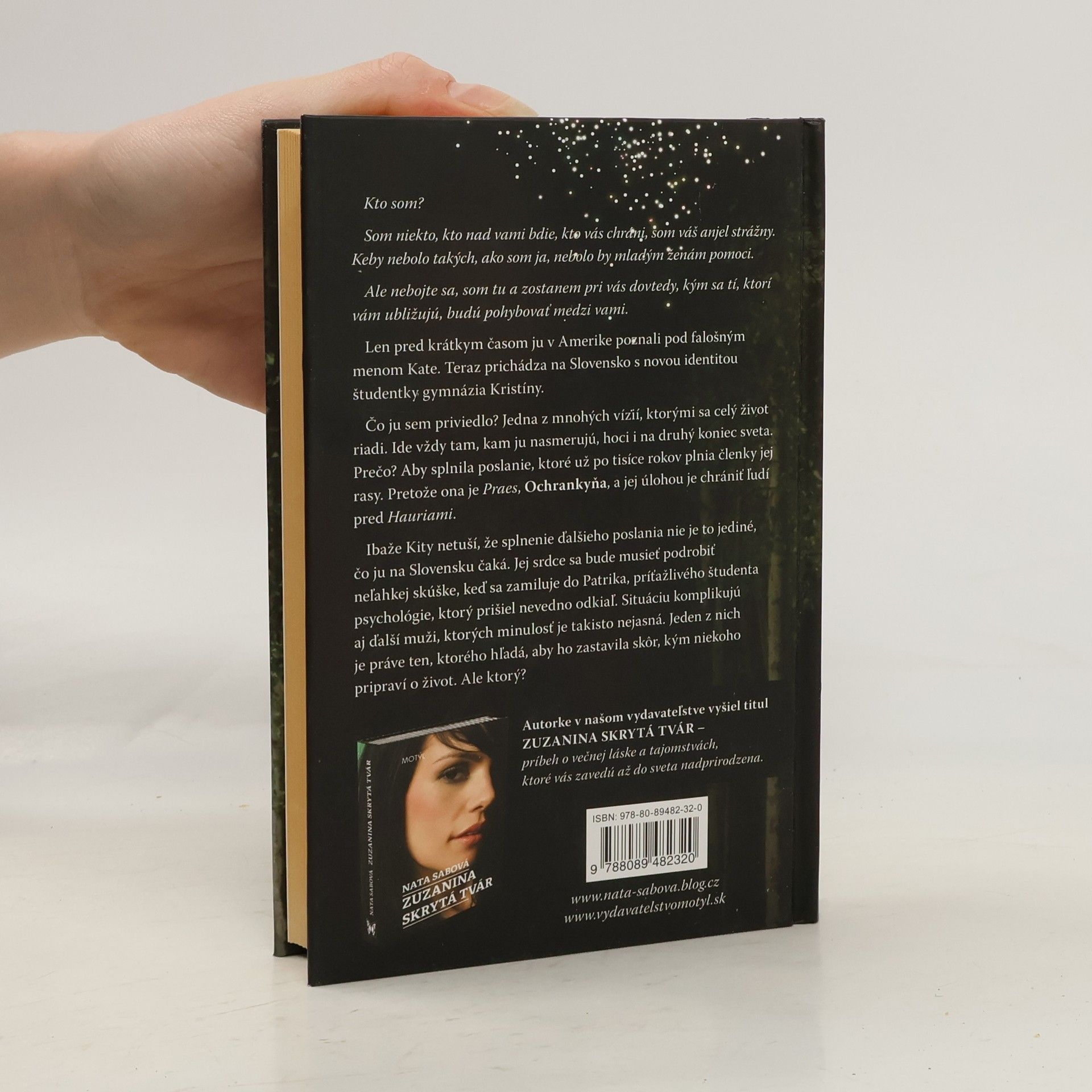 Kto som? Som niekto, kto nad vami bdie, kto vás chráni, som váš anjel strážny. Keby nebolo takých, ako som ja, nebolo by mladým ženám pomoci. Ale nebojte sa, som tu a zostanem pri vás dovtedy, kým sa tí, ktorí vám ubližujú, budú pohybovať medzi vami. Len pred krátkym časom ju v Amerike poznali pod falošným menom Kate. Teraz prichádza na Slovensko s novou identitou študentky gymnázia Kristíny. Čo ju sem priviedlo? Jedna z mnohých vízií, ktorými sa celý život riadi. Ide vždy tam, kam ju nasmerujú, hoci i na druhý koniec sveta. Prečo? Aby splnila poslanie, ktoré už po tisíce rokov plnia členky jej rasy. Pretože ona je Praes, Ochrankyňa, a jej úlohou je chrániť ľudí pred Hauriami. Ibaže Kity netuší, že spnenie ďalšieho poslania nie je to jediné, čo ju na Slovensku čaká. Jej srdce sa bude musieť podrobiť neľahkej skúške, keď sa zamiluje do Patrika, príťažlivého študenta psychológie, ktorý prišiel nevedno odkiaľ. Situáciu komplikujú aj ďalší muži, ktorých minulosť je takisto nejasná. Jeden z nich je práve ten, ktorého hľadá, aby ho zastavila skôr, kým niekoho pripraví o život. Ale ktorý?