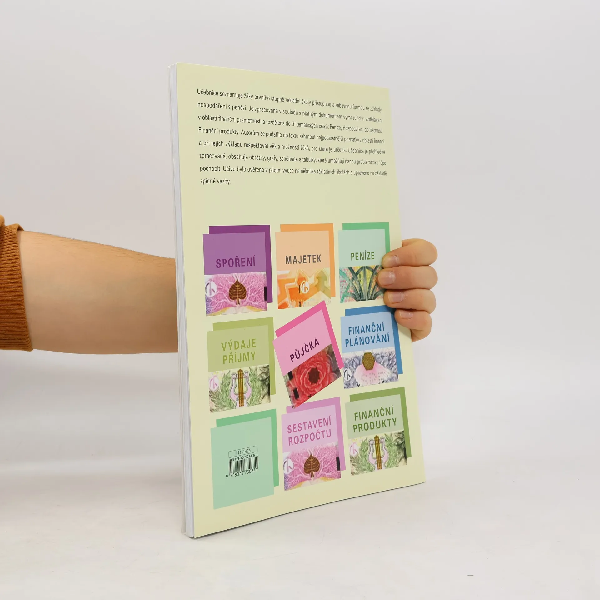 Učebnice seznamuje žáky 1. stupně ZŠ přístupnou a zábavnou formou se základy hospodaření s penězi. Je zpracována v souladu s platným dokumentem vymezujícím vzdělávání v oblasti finanční gramotnosti. Učivo je rozděleno do tří tematických celků: Peníze, Hospodaření domácnosti, Finanční produkty. Do učebnice se podařilo zahrnout nejpodstatnější poznatky z finanční oblasti a přitom respektovat věk a možnosti žáků 1. stupně. Učebnice je přehledně zpracovaná, obsahuje obrázky, grafy, schémata a tabulky, které umožňují danou problematiku lépe pochopit. Učivo bylo ověřeno v pilotní výuce na několika základních školách a upraveno na základě zpětné vazby.