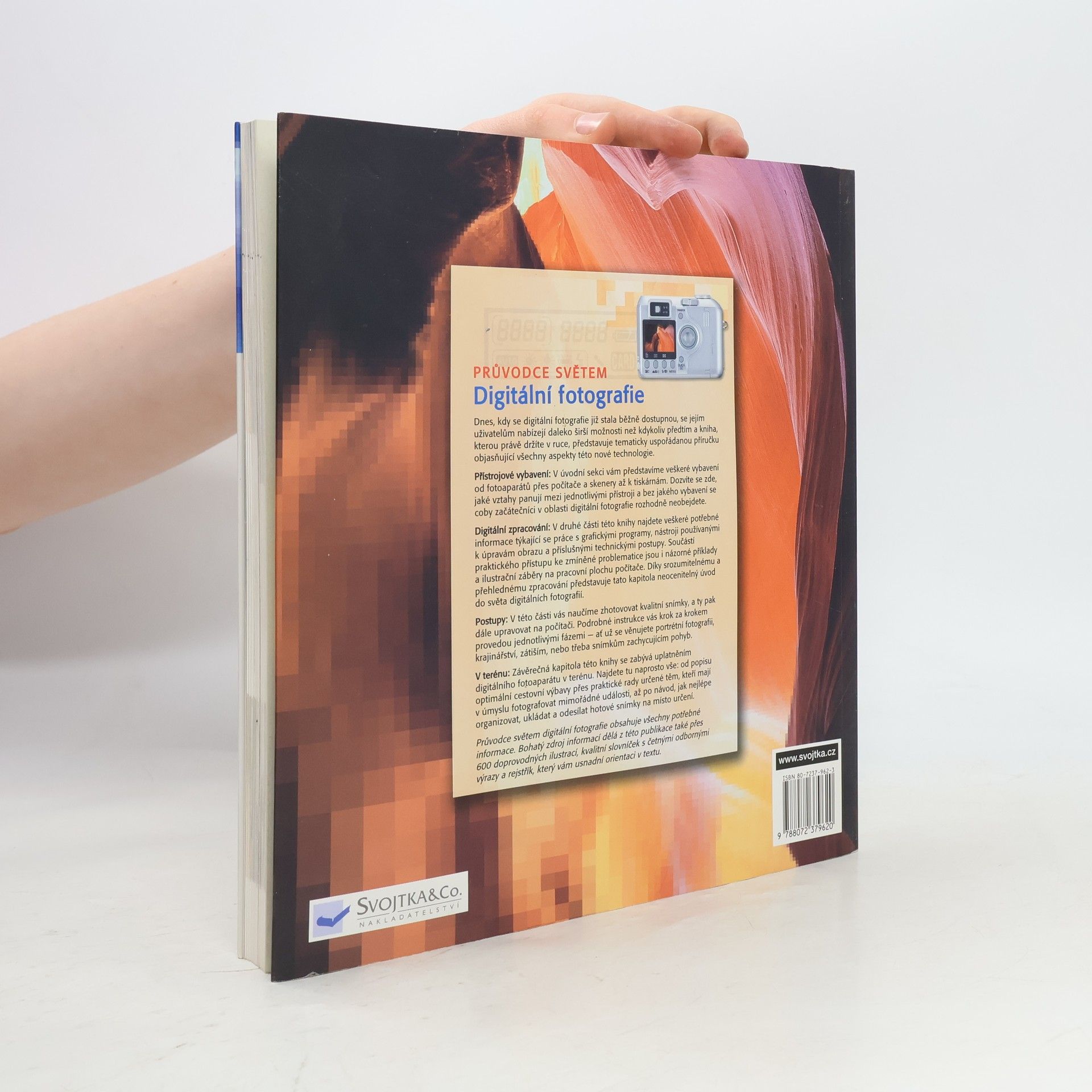 Dnes, kdy se digitální fotografie již stala běžně dostupnou, se jejím uživatelům nabízejí daleko širší možnosti než kdykoliv předtím a tato kniha představuje tematicky uspořádanou příručku objasňující všechny aspekty nové technologie. Jednotlivé kapitoly obsahují: Přístrojové vybavení, Digitální zpracování, Postupy a poslední kapitola se nazývá V terénu.