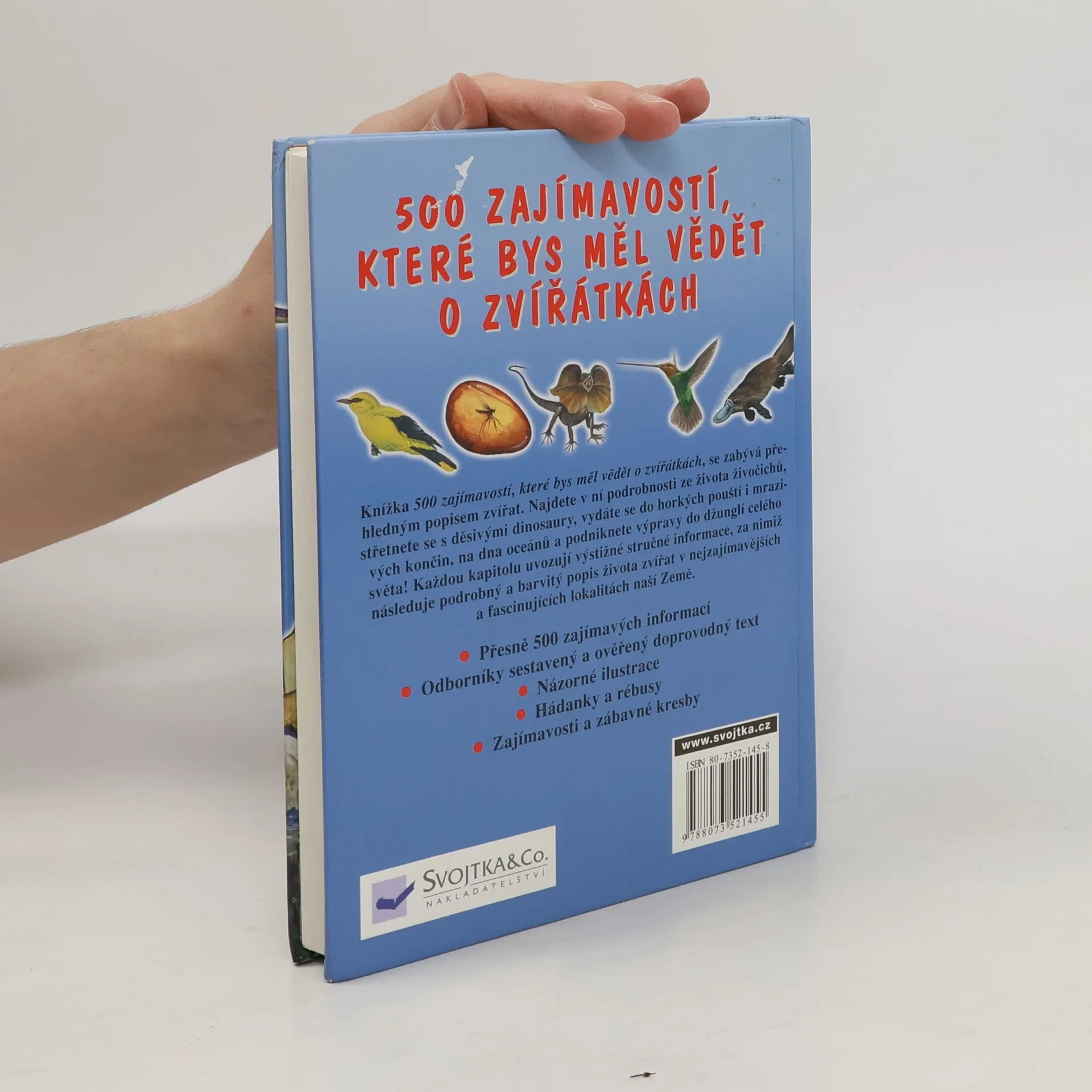 Ilustrovaná publikace pro děti zhruba od 9 let popisuje zajímavosti ze světa zvířat. Zajímavosti o dinousaurech, plazech, obojživelnících, hmyzu, savcích a ptácích. Každou kapitolu, která má své číslo, uvozují výstižné a stručné informace popisující život jednotlivých druhů. Zvláštností knihy jsou krátké kvízy, neuvěřitelné zajímavosti nebo návody, jak vyrobit jednoduché věci inspirované náměty z živočišné říše (např. masky, závěsné předměty, záložky apod.).