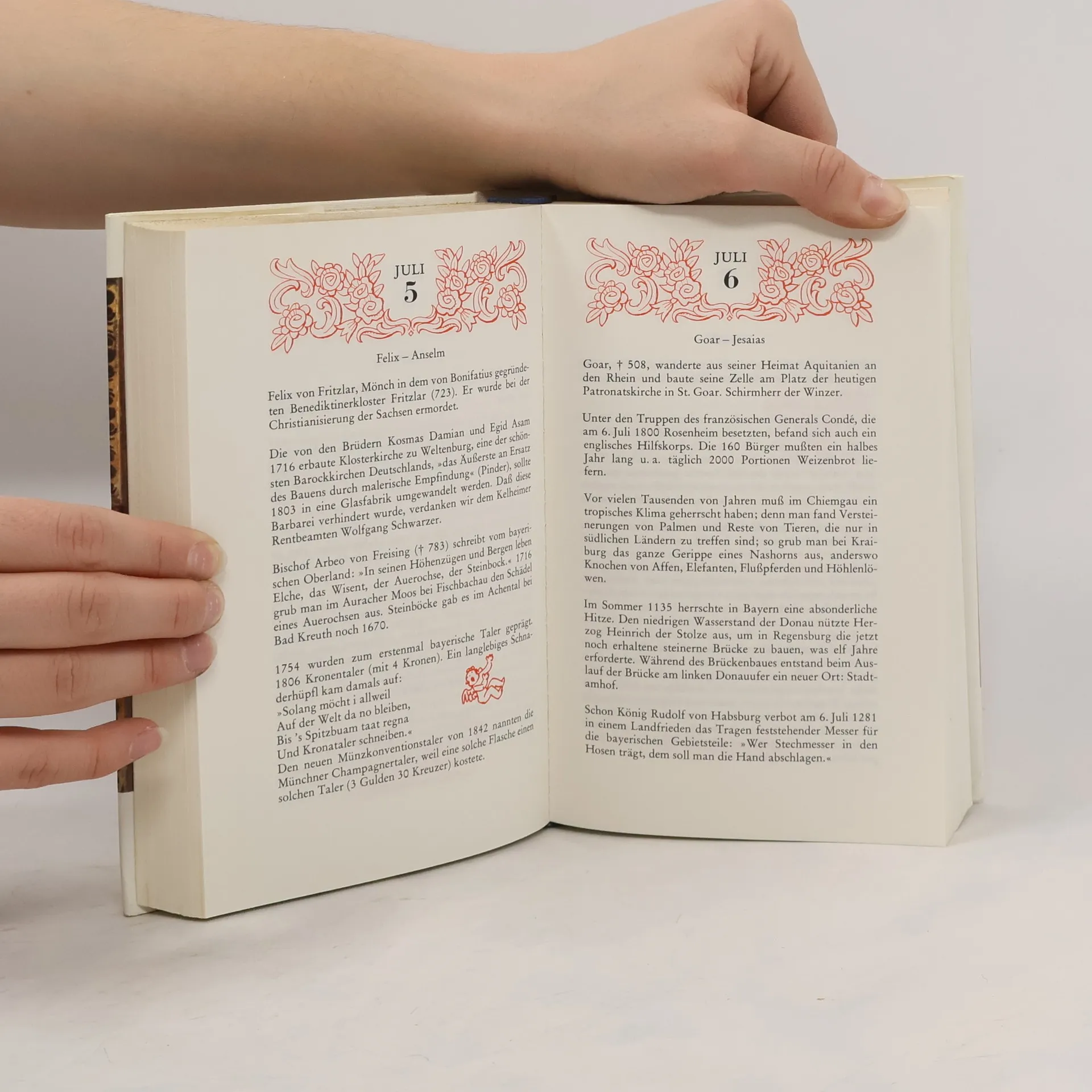 Ein Kalender für alle Jahre: Zu jedem Tag nennt er den dazugehörigen Heiligen und Geburtstage wichtiger Persönlichkeiten aus der bayerischen Geschichte und Gegenwart, er bringt Fakten und Anekdoten, vermittelt Wissenwertes und erzählt Kurioses zu jedem Datum. Liebevolle Illustrationen von Paul Neu begleiten die lesenswerten und anregenden Beiträge.