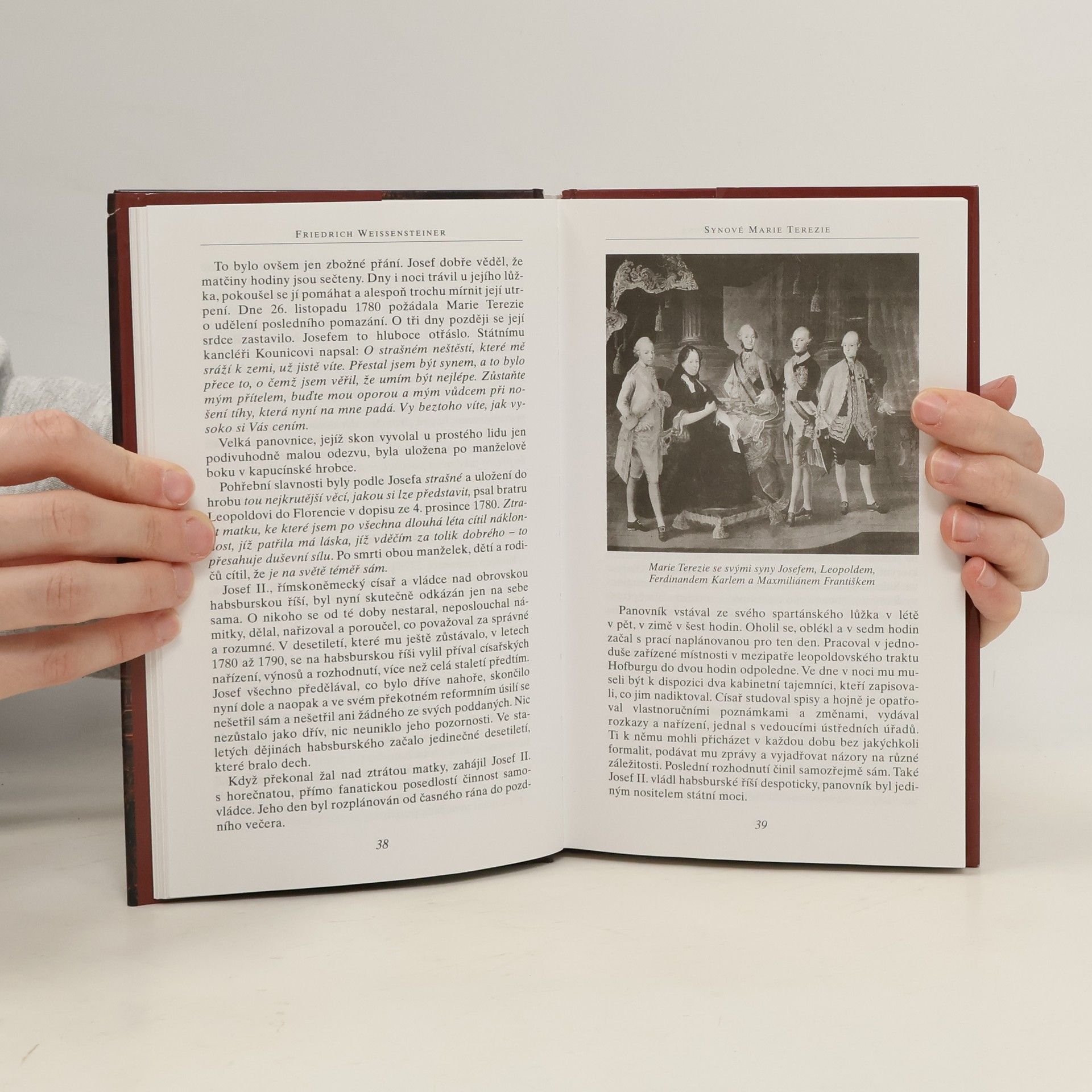 Životopisné medailony pěti synů císařovny Marie Terezie. Rodinný život císařského dvora. Výchova a vzdělání dětí. Sňatková politika. Kniha tematicky navazuje na "Dcery Marie Terezie" od stejného autora. Popisuje životní osudy Josefa II., Leopolda II. a tří méně známých synů císařského páru.