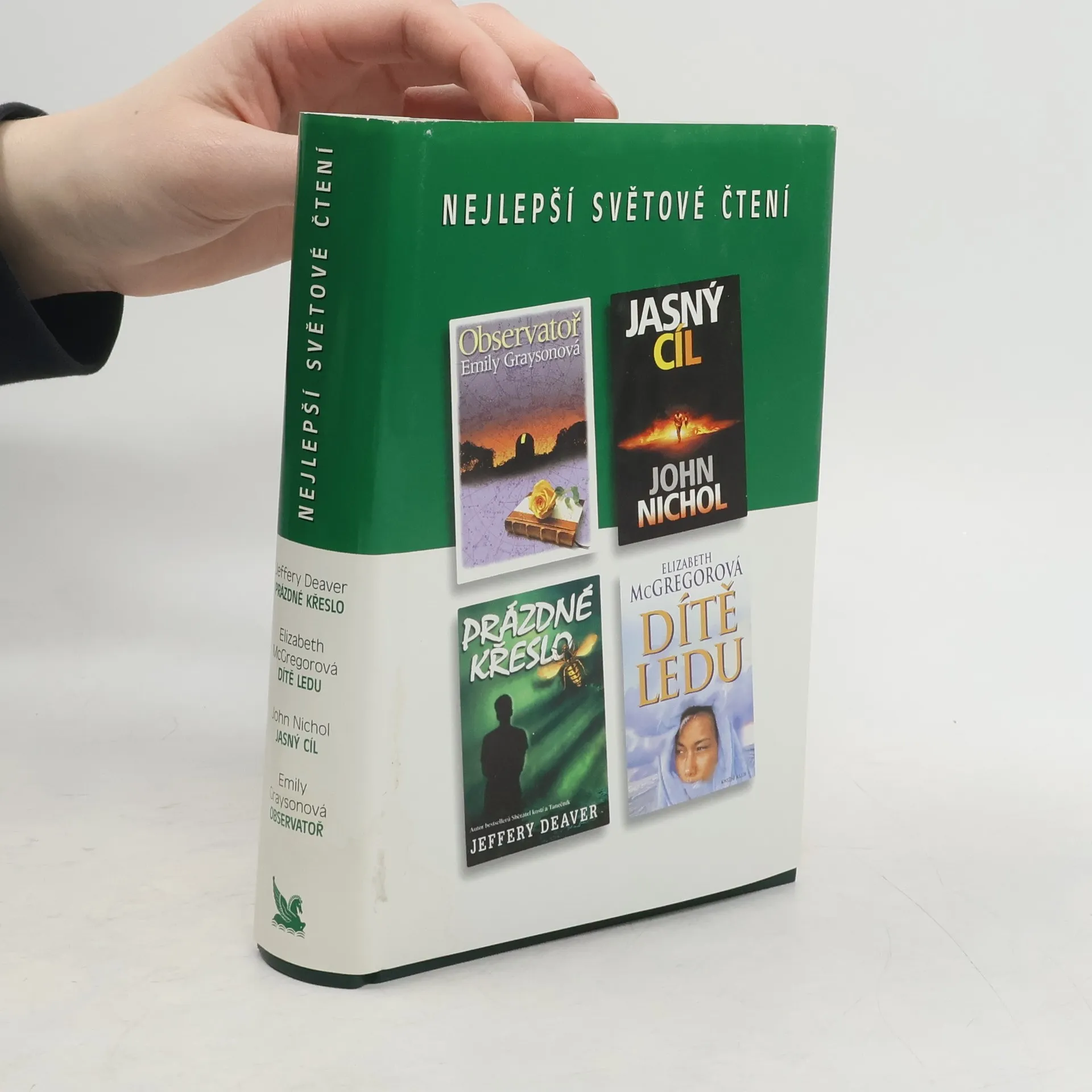 Svazek obsahuje čtyři napínavé romány amerických a anglických autorů ve zkrácené verzi. Jednotlivé tituly jsou doplněny stručnými medailony autorů. Kniha obsahuje tyto tituly: Grayson, Emily: Observatoř Nichol, John: Jasný cíl Deaver, Jeffery: Prázdné křeslo McGregor, Elizabeth: Dítě ledu