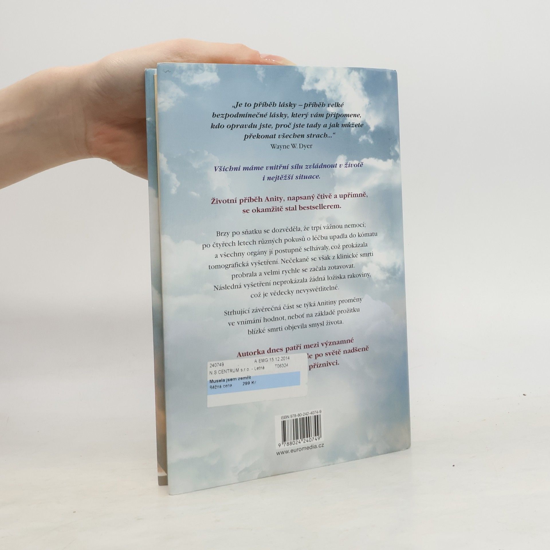 Životní příběh Anity, napsaný čtivě a upřímně, se okamžitě stal bestsellerem a autorka dnes patří mezi významné osobnosti, nadšeně vítané čtenáři po celém světě. Brzy po sňatku u ní diagnostikovali rakovinu, po čtyřech letech různých pokusů o léčbu upadla do kómatu a všechny orgány jí postupně selhávaly, což prokázala tomografická vyšetření. Nečekaně se však z klinické smrti probrala a velmi rychle se začala zotavovat. Následná vyšetření neprokázala žádná ložiska rakoviny, což je zcela neuvěřitelné a vědecky nevysvětlitelné. Strhující závěrečná část se týká autorčiny proměny ve vnímání hodnot, neboť na základě prožitku blízké smrti objevila smysl života. Anita Moorjani ve své inspirativní autobiografii líčí, jak jí po čtyřech letech boje se zákeřnou nemocí tělo vypovědělo službu. Dostala se do neobyčejného stavu zážitku blízké smrti a v něm si uvědomila svou vlastní hodnotu… i skutečnou příčinu své nemoci. Když nabyla vědomí, její stav se zlepšoval takovou rychlostí, že ji za několik týdnů bez jakýchkoli známek rakoviny propustili z nemocnice. Vyrůstala v tradiční hinduistické rodině uprostřed převážně čínské a britské společnosti a odmalička ji silně ovlivňovaly nejrůznější kulturní a náboženské zvyklosti.