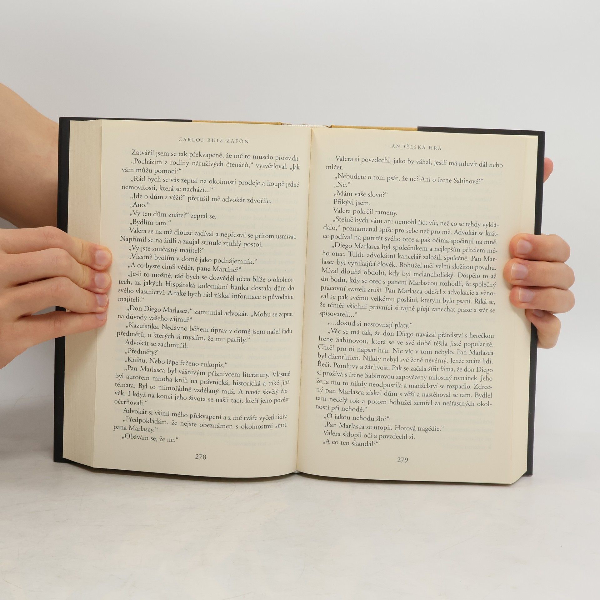 Bestseller Stín větru okouzlil čtenáře po celém světě mistrovskou kombinací gotického thrilleru a historického románu. Andělská hra přináší neméně poutavý příběh – úchvatnou variaci na faustovský motiv o pokušení a touze po nesmrtelnosti, situovanou znovu do prostředí magické Barcelony, tentokrát první poloviny dvacátého století. Mladý novinář a spisovatel David Martin přijme nabídku záhadného vydavatele Andrease Corelliho a rozhodne se pro něj napsat knihu, jakou ještě nikdy nikdo nenapsal. Čím náročnější se mu tento úkol jeví, tím více záhad vyvstává i kolem muže, který si dílo objednal. Záhad, nevysvětlitelných náhod i úmrtí za nejasných okolností. A otázek, z nichž nejpalčivější zní: Komu vlastně upsal David Martín svou spisovatelskou i lidskou duši?