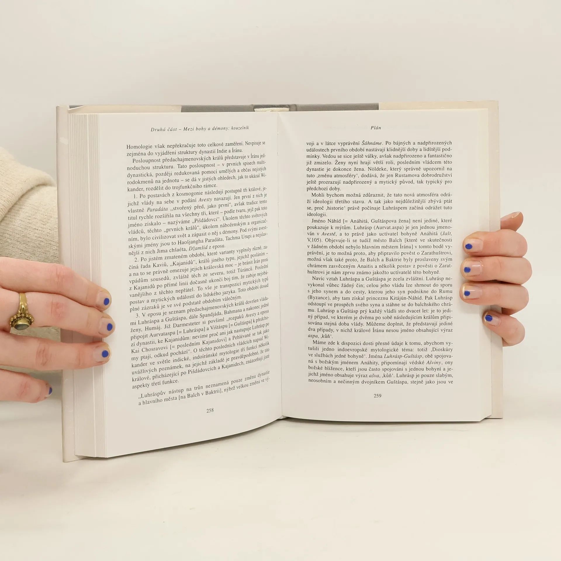 Ve druhém dílu své trilogie odhaluje Dumézil na základě analýzy a srovnání literárního dědictví indoevropských národů pozoruhodné a velmi přesné shody v jejich mytologii. V první části jsou hlavním tématem tři provinění hrdinů (skandinávského Starkada, indického Šišupály a řeckého Héraklea), ve druhé části jde o společný prototyp, z kterého vychází indický kouzelník Kávja Ušanas a íránský král Kavi Usan, a ve třetí jsou to shody v životní dráze dvou králů (indického Jájatiho a irského Eochaida Fedlecha) a jejich potomků.