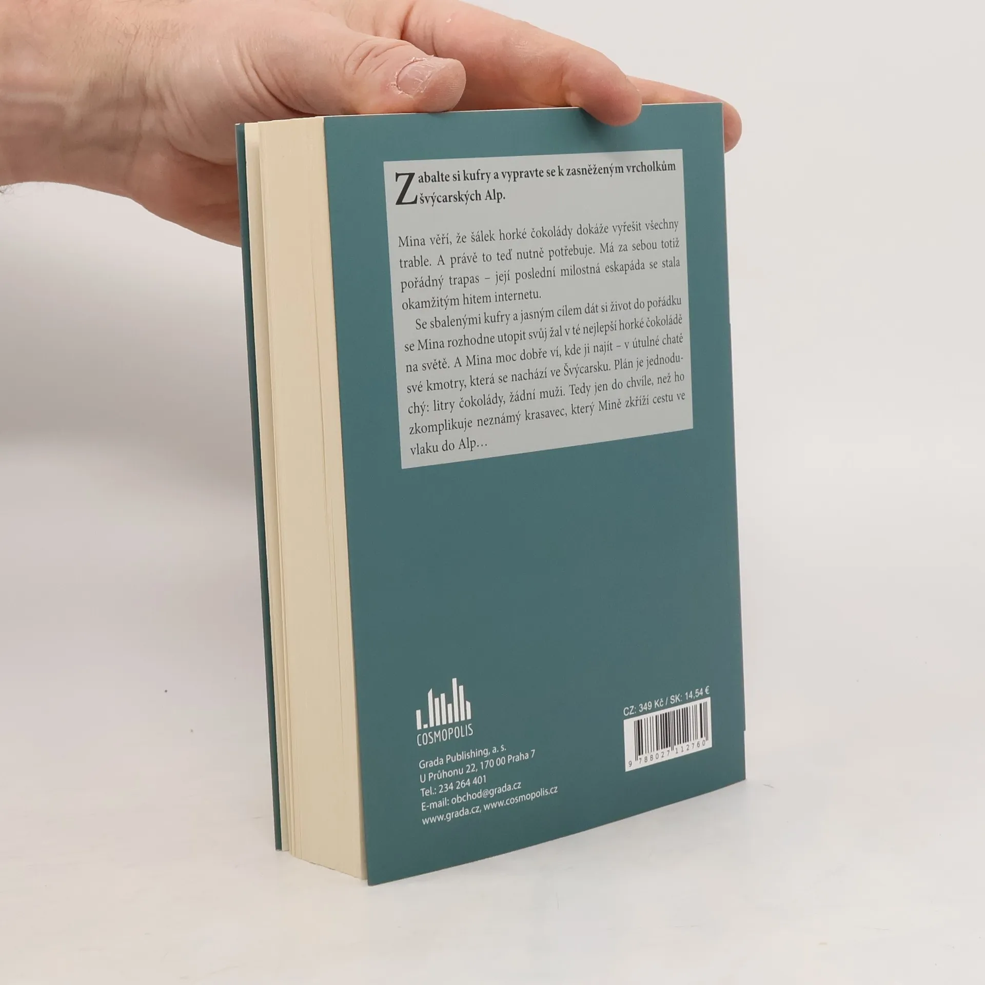 Minna věří, že šálek horké čokolády dokáže vyřešit všechny trable. A právě to teď potřebuje. Má za sebou totiž pořádný trapas – její poslední milostná eskapáda se stala okamžitým hitem internetu. Se sbalenými kufry a jasným cílem dát si do pořádku život, se Minna rozhodne utopit svůj žal v té nejlepší horké čokoládě na světě. A Minna moc dobře ví, kde ji najít – v útulné chatě své kmotry, která se nachází ve Švýcarsku. Plán je jednoduchý: litry čokolády, žádní muži. Tedy do té chvíle, než ho zkomplikuje neznámý krasavec, který Minně zkříží cestu ve vlaku do Alp…