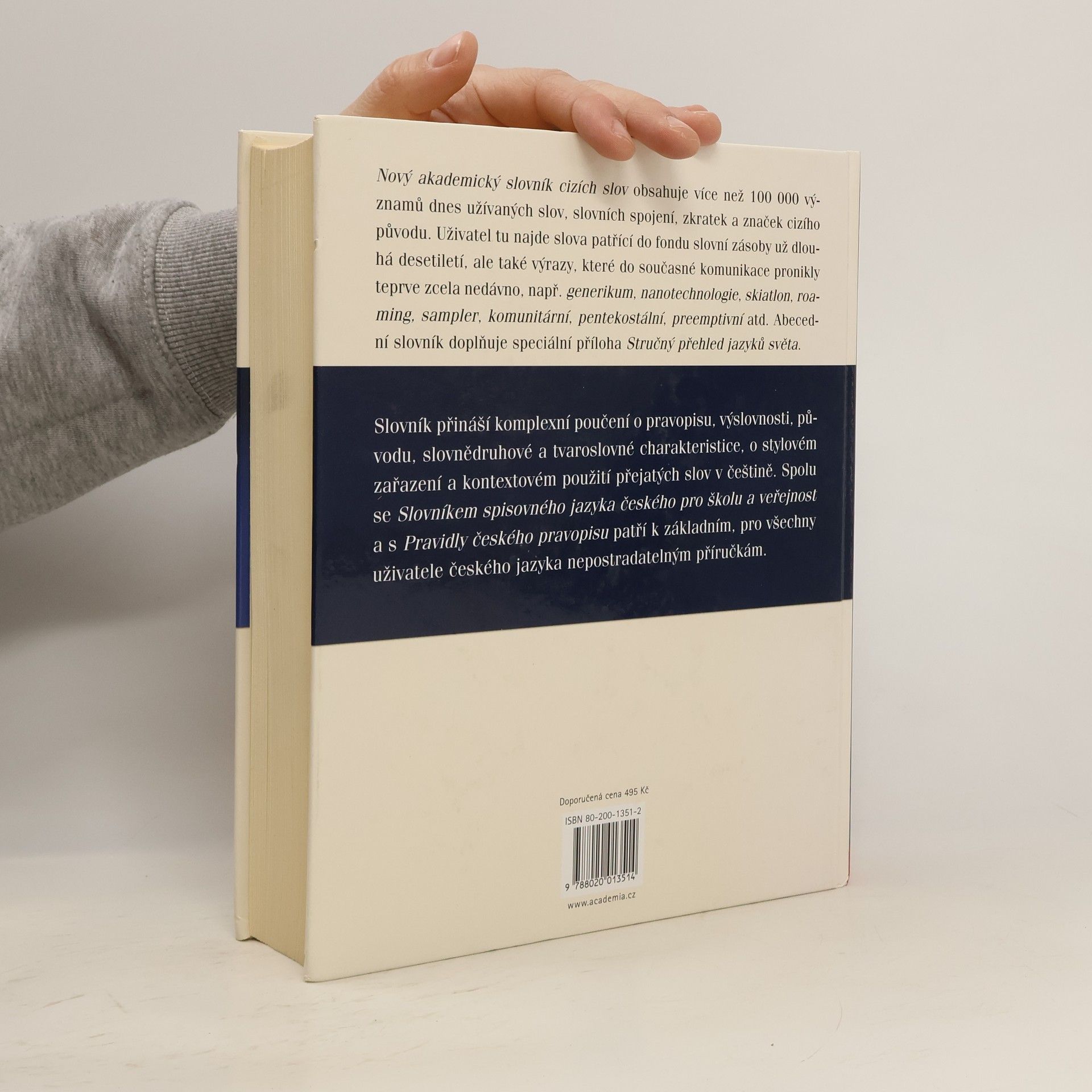 Nové, přepracované vydání oblíbeného a nejrozsáhlejšího slovníku cizích slov u nás přináší více než 100 tisíc výrazů, pojmů, termínů, slovních spojení cizího původu a slov přejatých ze všech oborů lidské činnosti, které se staly běžnou součástí našeho moderního jazyka. Dílo je výsledkem práce zkušeného kolektivu lexikografů Ústavu pro jazyk český AV ČR.