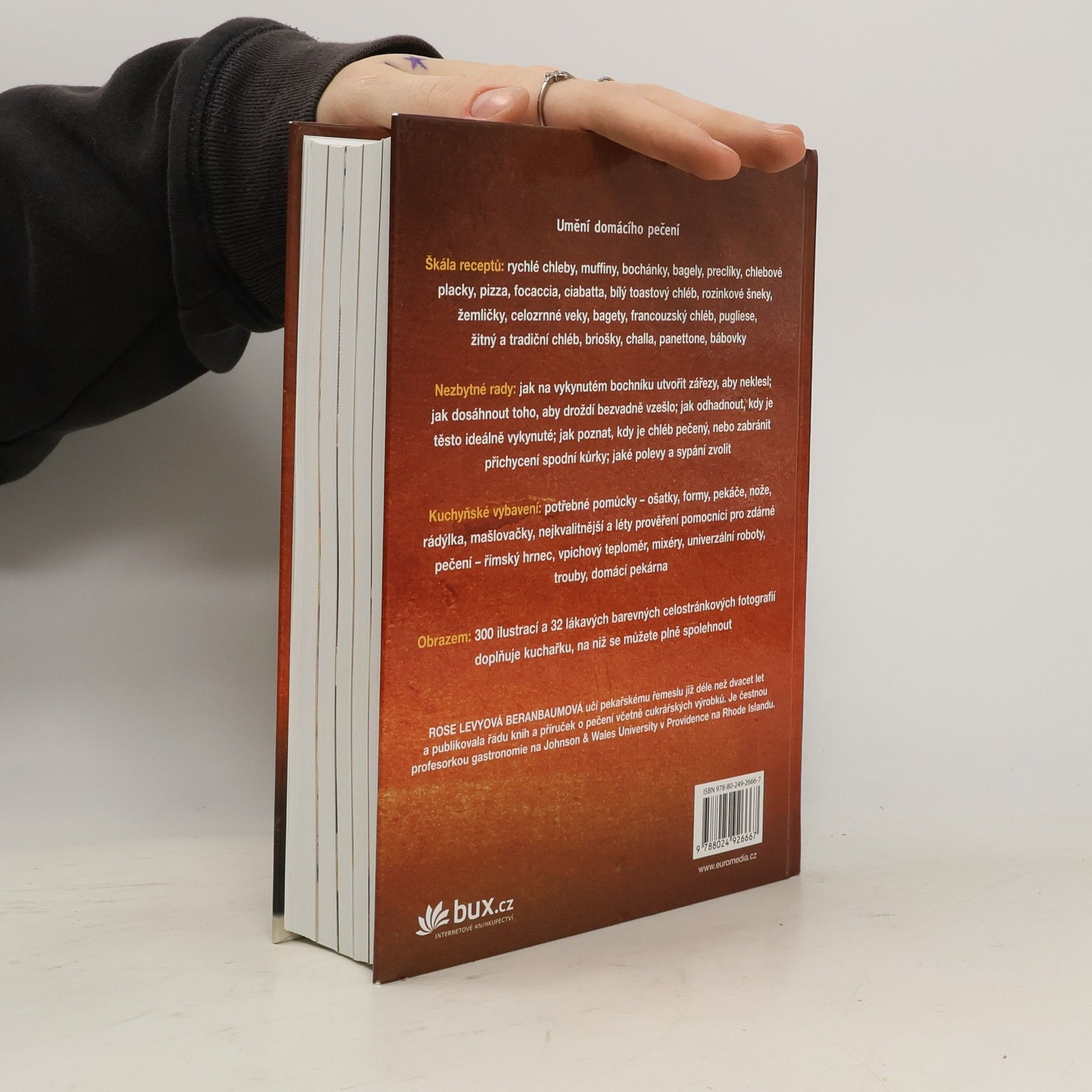Již podruhé vychází kompletní „učebnice“ domácího pečení. Kromě klasického chleba nebo ciabatty si připravíte muffiny, challu, pizzu, vícezrnné chleby, žemle, bagely nebo briošky. U každého receptu autorka srozumitelně vysvětlila taje technologie a připojila finesy profesionálů. Nechybějí ani rady, které vyřeší všechny problémy: jak na dokonale vykynutém bochníku utvořit zářezy tak, aby neklesl. Jak odhadnout, kdy je těsto ideálně vykynuté. Jak poznat, kdy je chléb pečený, nebo jak zabránit přichycení spodní kůrky.